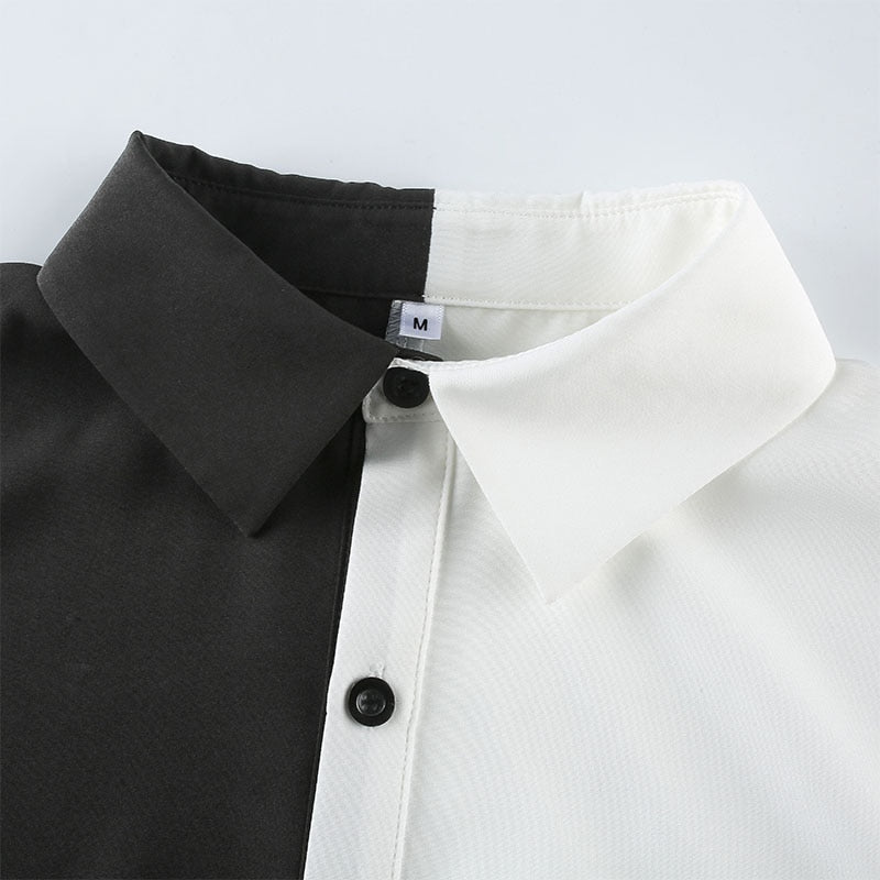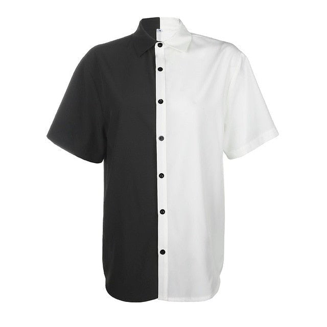 Voici une chemise qui est parfaite pour les filles qui veulent s'habiller comme en Corée du Sud. C'est une chemise avec un côté noir et un blanc. Elle est parfaite pour faire une robe courte.