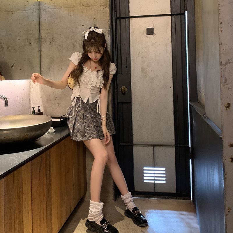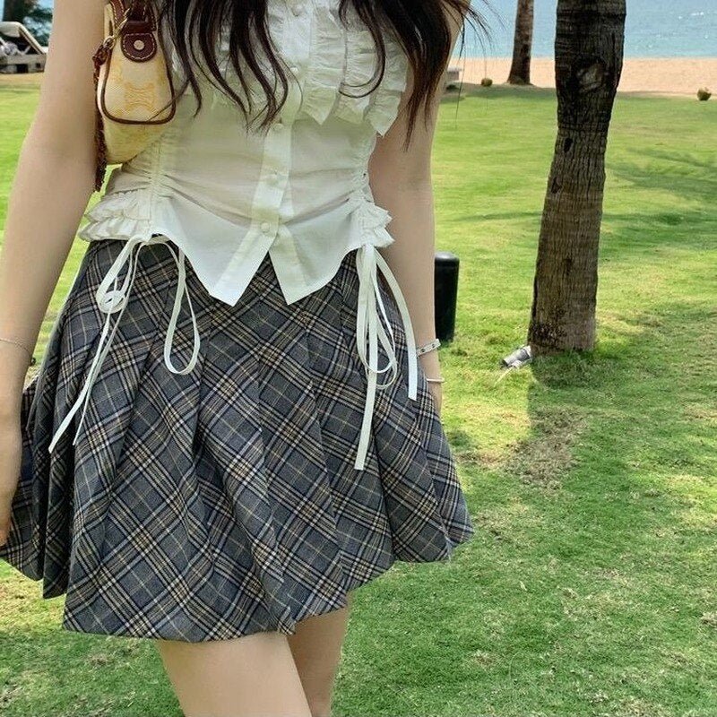 Si vous aimez les clips de K-pop et les danses, vous allez apprécier cette belle jupe au style gothique. Elle est parfaite pour danser et mettre en avant vos jambes. Cette jupe à carreaux gris est magnifique.