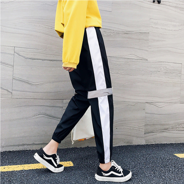 Un pantalon de Jogging Coréen avec des bandes réfléchissantes pour un style Streetwear même la nuit !