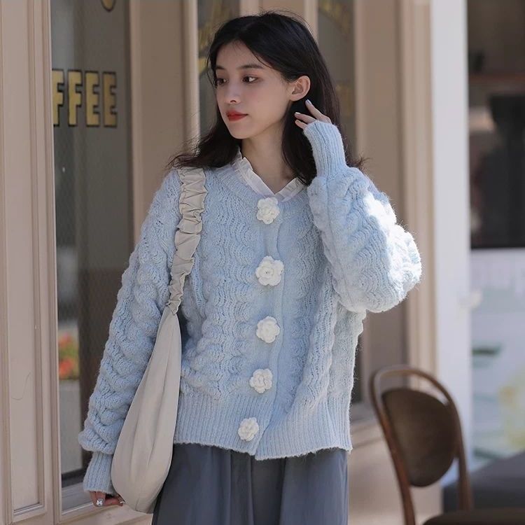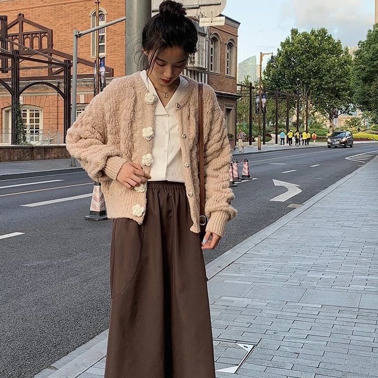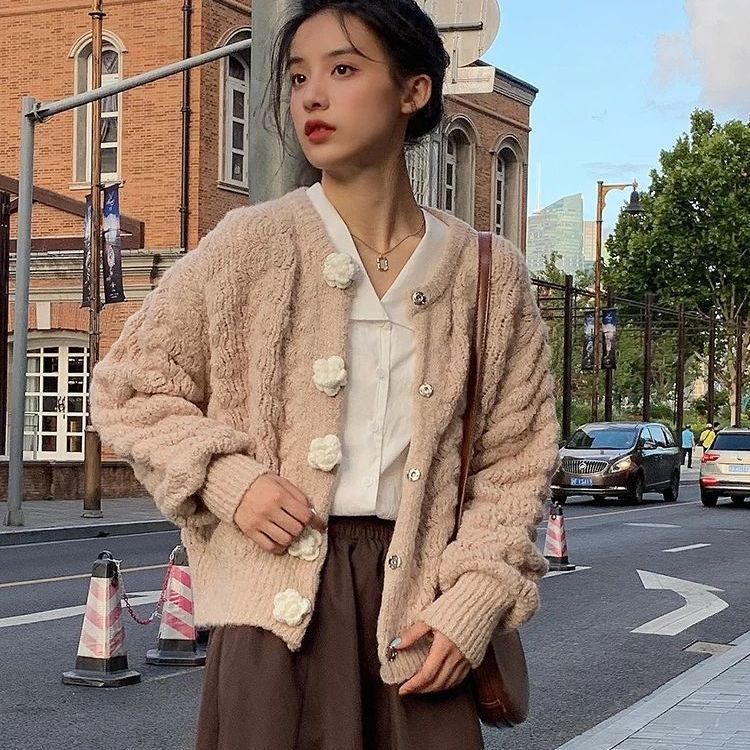 Cette veste en laine synthétique possède des beaux boutons en forme de fleurs. Si vous cherchez une veste douce et mignonne connue en Corée du Sud, c'est la veste qu'il vous faut. La matière est très douce et est agréable en toute saison.