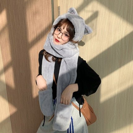 Soyez au chaud comme un chat ! Voici le bonnet aux oreilles de chat qui fait aussi écharpe et moufle.