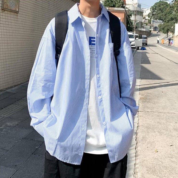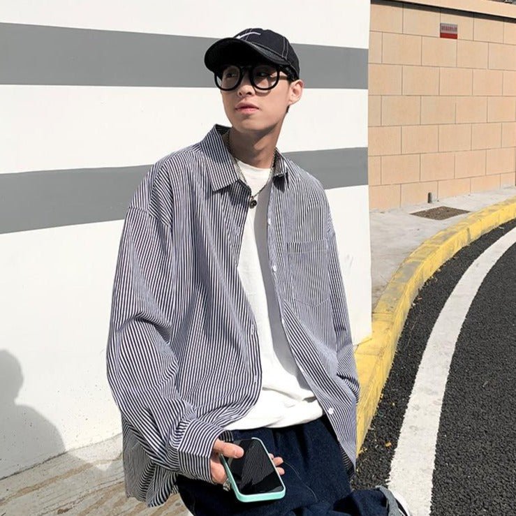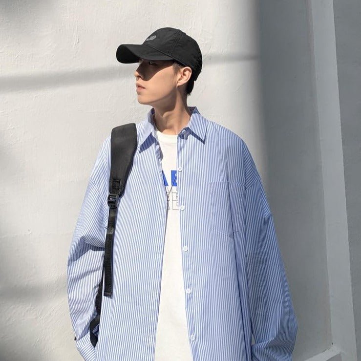Cette chemise à rayures est très pratique pour bien s'habiller et avoir un style Streetwear. Si vous êtes jeune, c'est un très bon compromis entre style classique et look tendance. La chemise est un incontournable de la mode coréenne. Celle-ci est disponible en bleu et en gris.