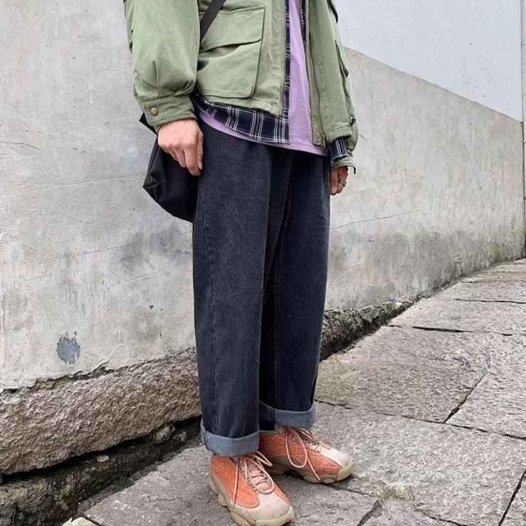 Ce Jeans avec une coupe droite est super car il est très simple. Ce style droit et authentique représente bien ce que l'on aime dans les jeans. C'est un look de bas très à la mode dans les quartiers célèbres de Séoul. Le tissu est de bonne qualité en coton et polyester.