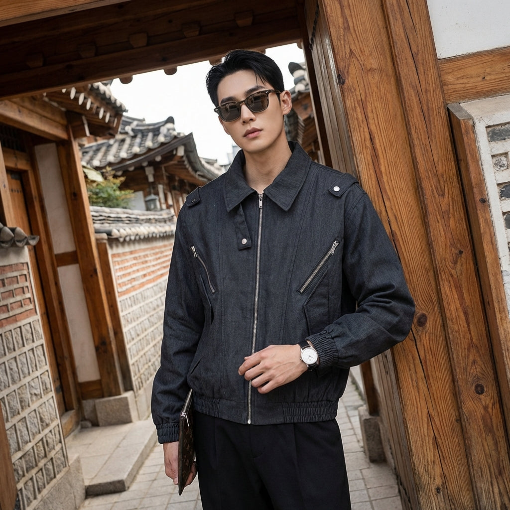 Veste en coton noire homme, style streetwear K-fashion, Koreanxwear