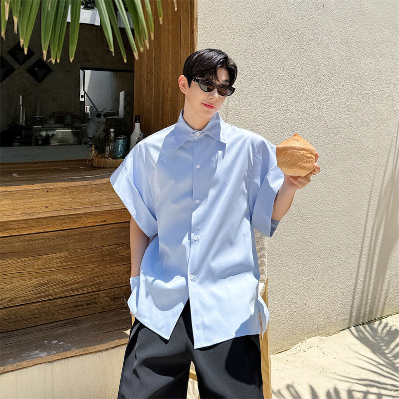 Disponible en plusieurs tailles (M, L, XL) et couleurs (Bleu Clair, Noir), cette chemise est un must-have pour toute garde-robe estivale.