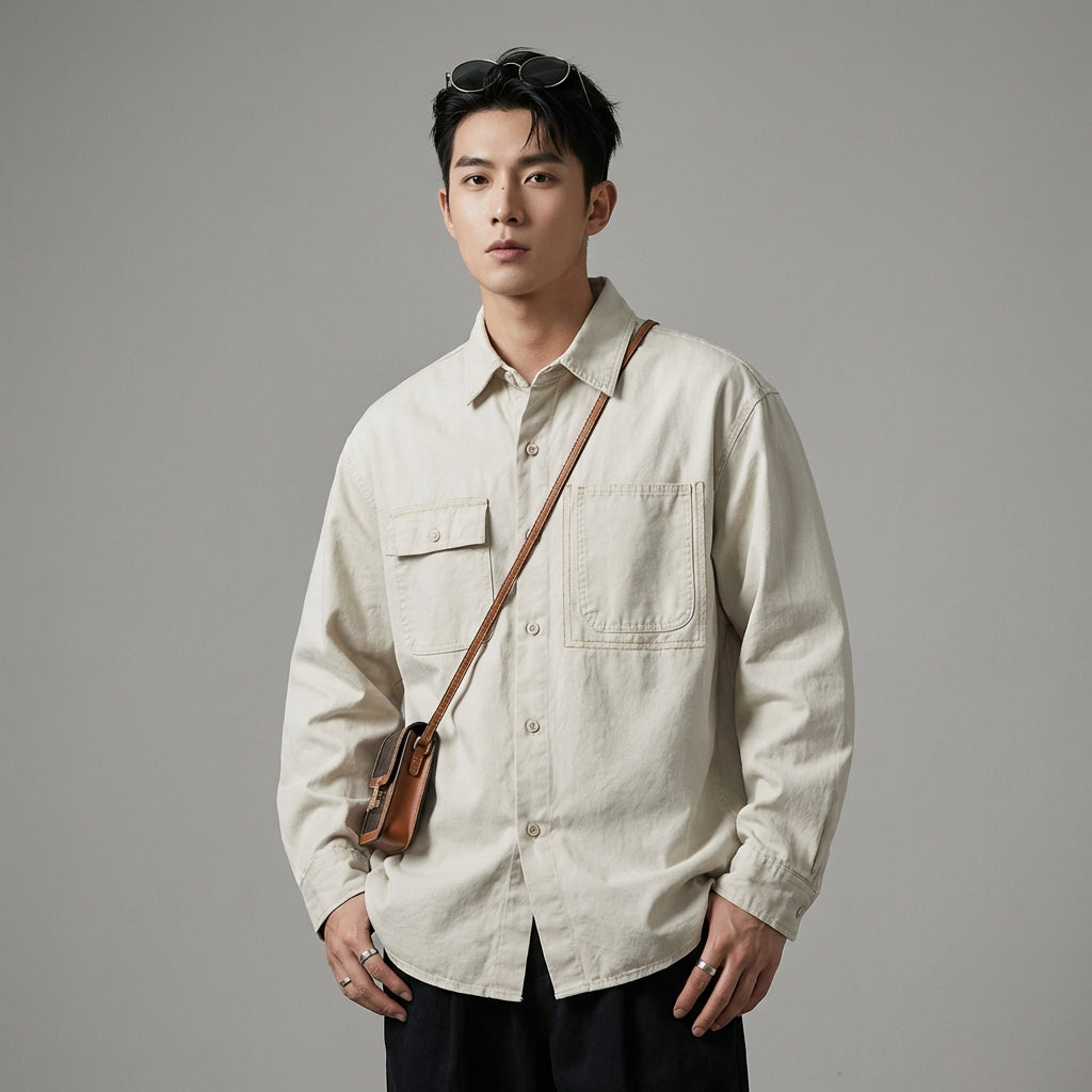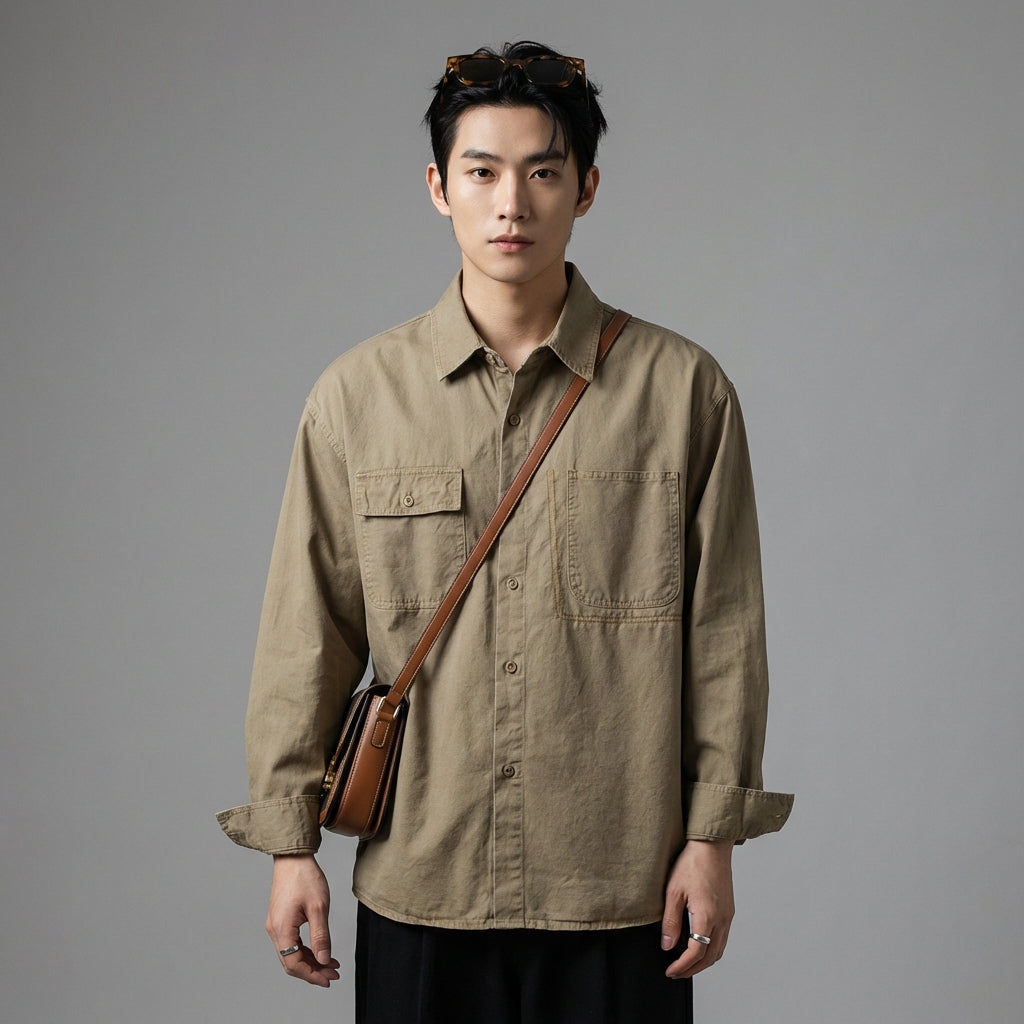 - Style : Streetwear, Décontracté, Minimaliste. Cette chemise incarne l'élégance discrète et moderne de la mode coréenne décontractée.