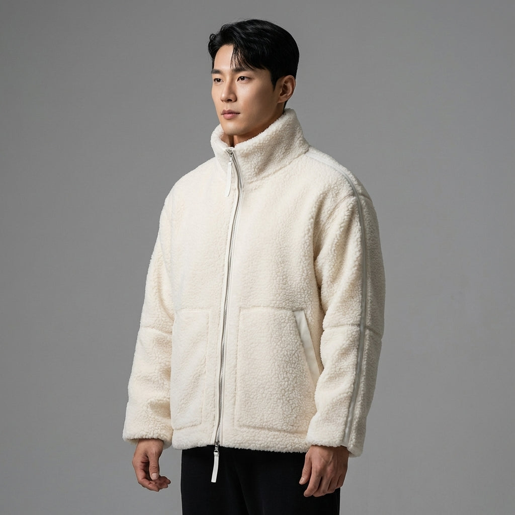 Cette veste zippée est la pièce maîtresse pour un style à la fois moderne et intemporel, ajoutant une touche d'élégance coréenne à votre garde-robe.