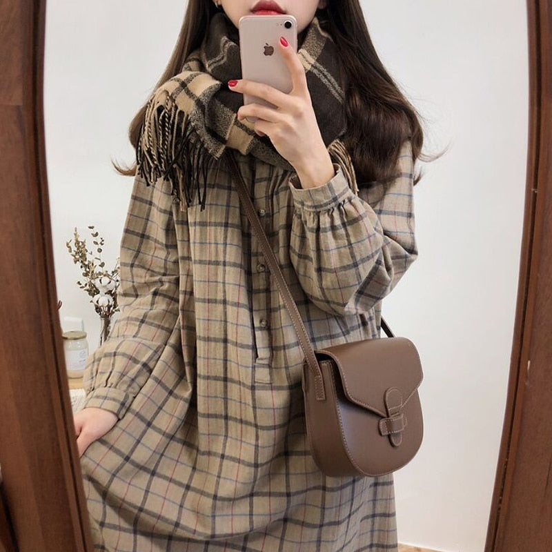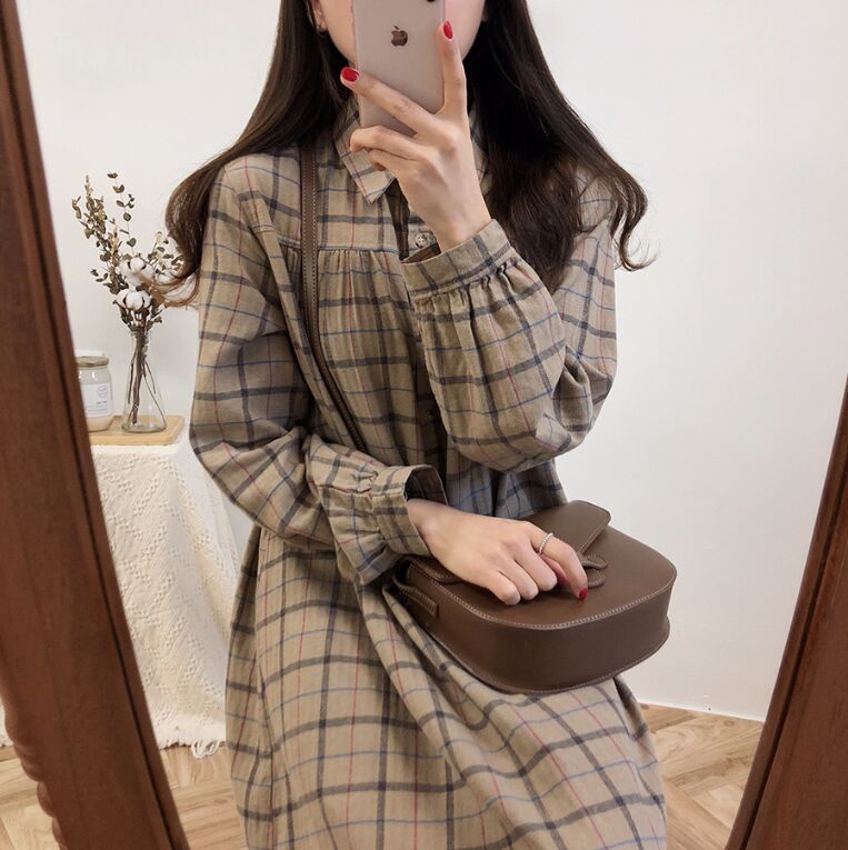 Si vous êtes étudiante ou que vous chercher à avoir le style d'une jeune coréenne, cette robe à manche longue est parfaite pour vous. Le tissu est agréable et comporte un motif à carreau.