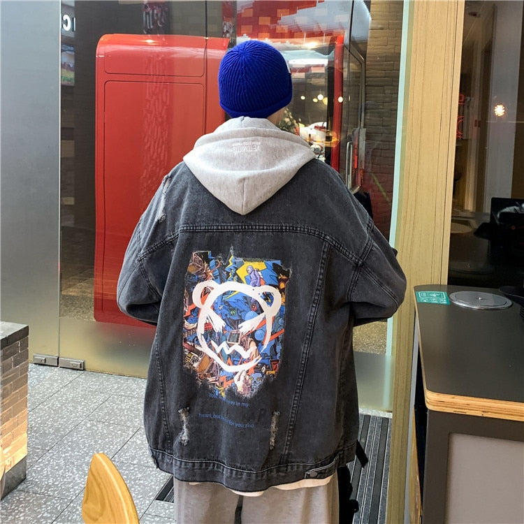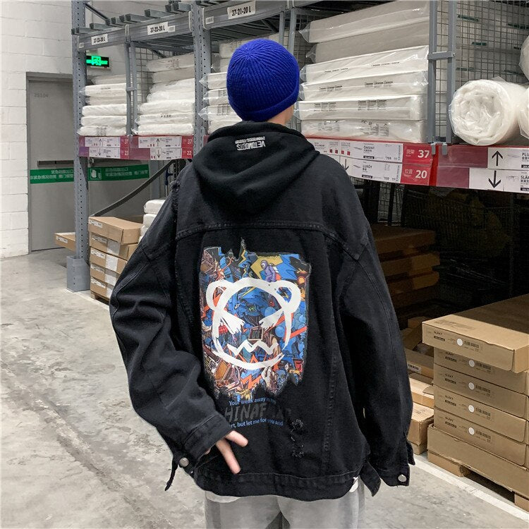 Cette veste en jeans possède une capuche de sweat. C'est un beau modèle qui est parfait en automne, au printemps et en hiver. Devenez le porteur d'une veste coréenne très à la mode. Un smiley ours coloré est imprimé dans le dos, ce qui plait beaucoup aux jeunes fans de K-Pop.