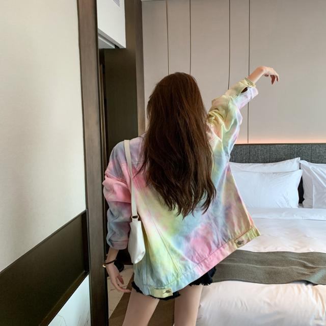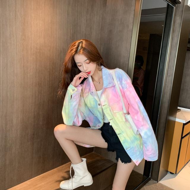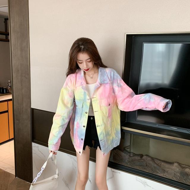 Voici une veste en jeans très atypique avec des couleurs variées comme un arc-en-ciel. C'est une magnifique veste en jeans qui plait en Corée du Sud. Elle sort de l'ordinaire et offre de la couleur à votre entourage. Démarquez-vous avec cette veste tendance.