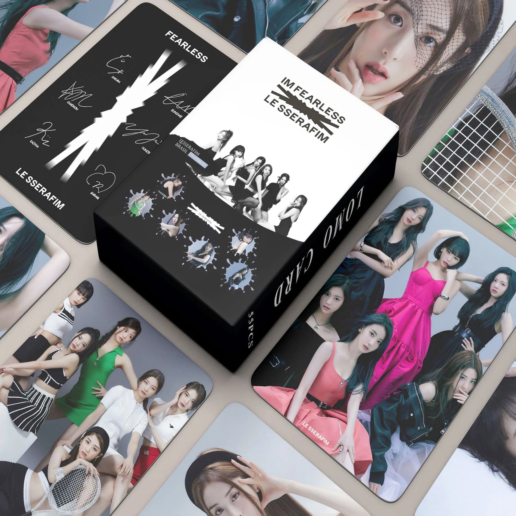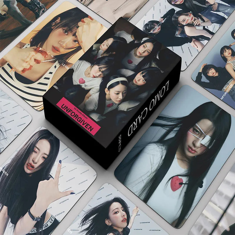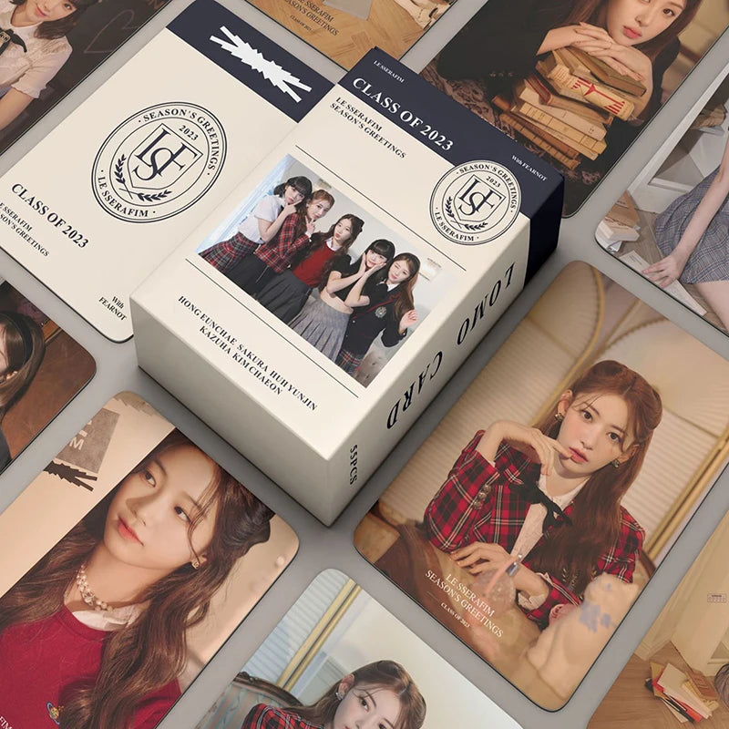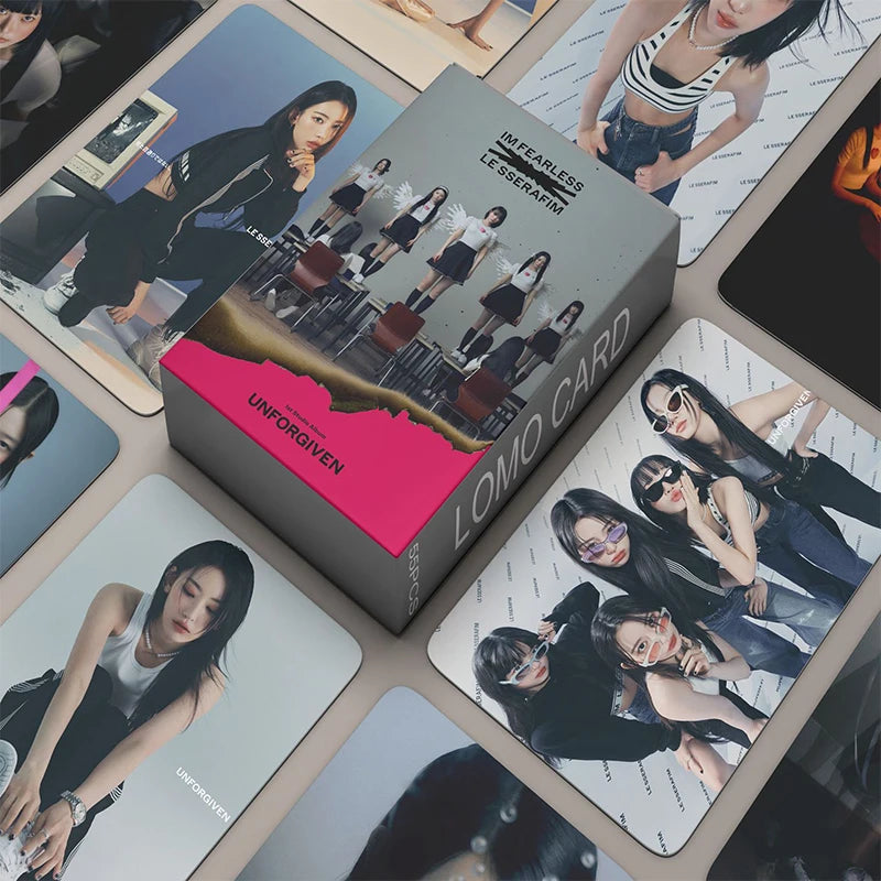 Découvrez notre Set de 55 Photocards LE SSERAFIM, une collection incontournable pour tous les fans du célèbre girl group LE SSERAFIM. Chaque set est un hommage aux différents album du groupe, capturant l'essence et le style unique du groupe. Ces cartes lomo imprimées avec soin offrent des images nettes et des couleurs vibrantes, parfaites pour enrichir votre collection de souvenirs Kpop.