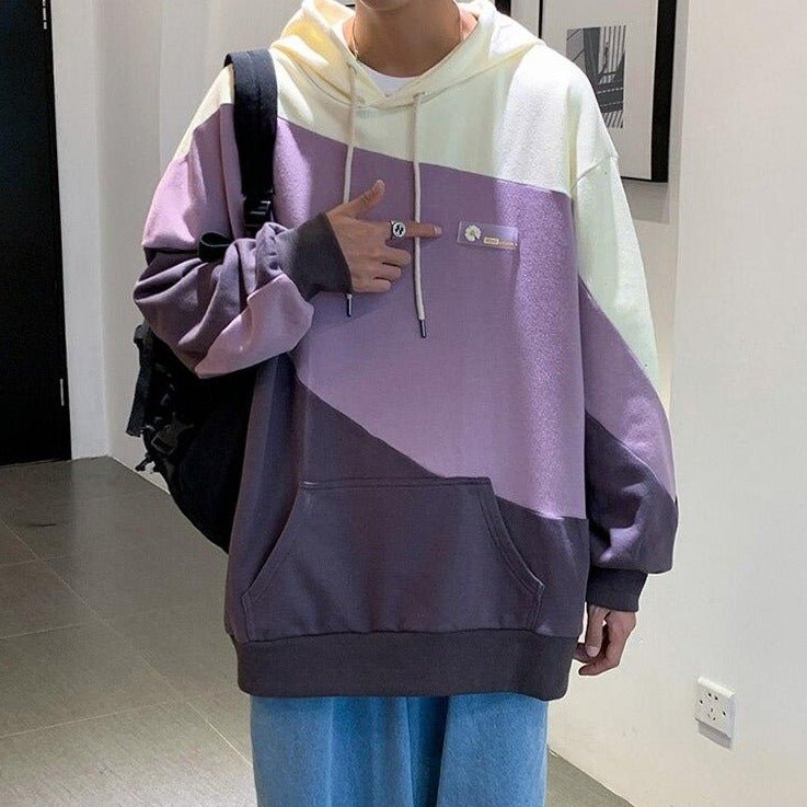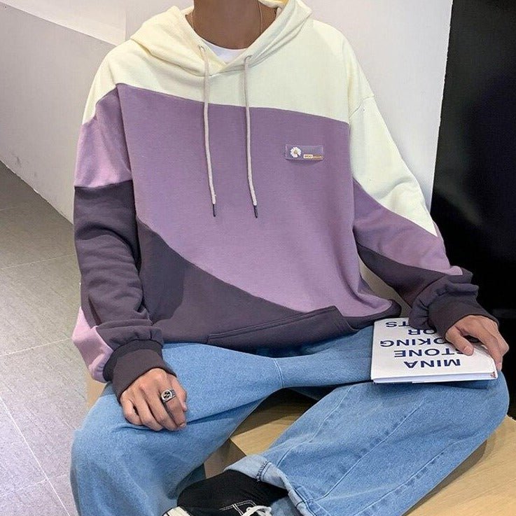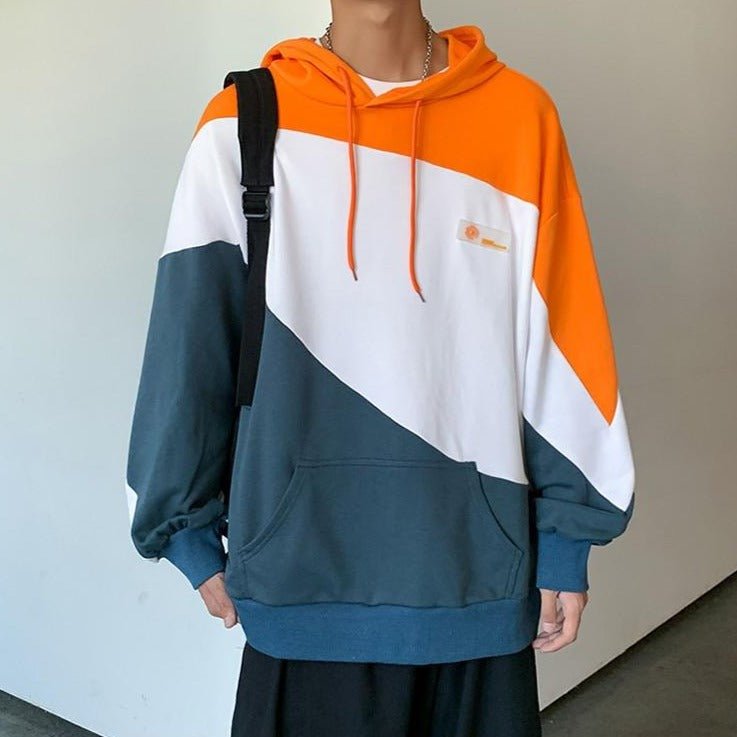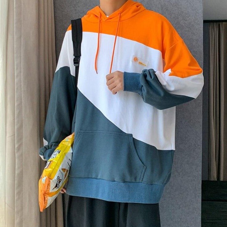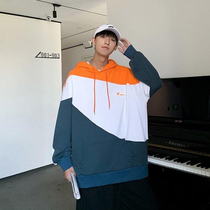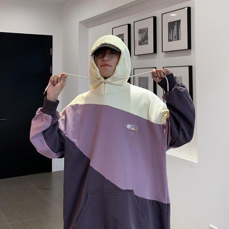 Voici un hoodie avec des diagonales qui est tendance en Corée du Sud. Ce Sweat à capuche est disponible en deux coloris différents. Le modèle violet et beige représente très bien la mode K-pop et le modèle orange et bleu représente mieux le rap coréen. Ce sweat est doux et confortable.