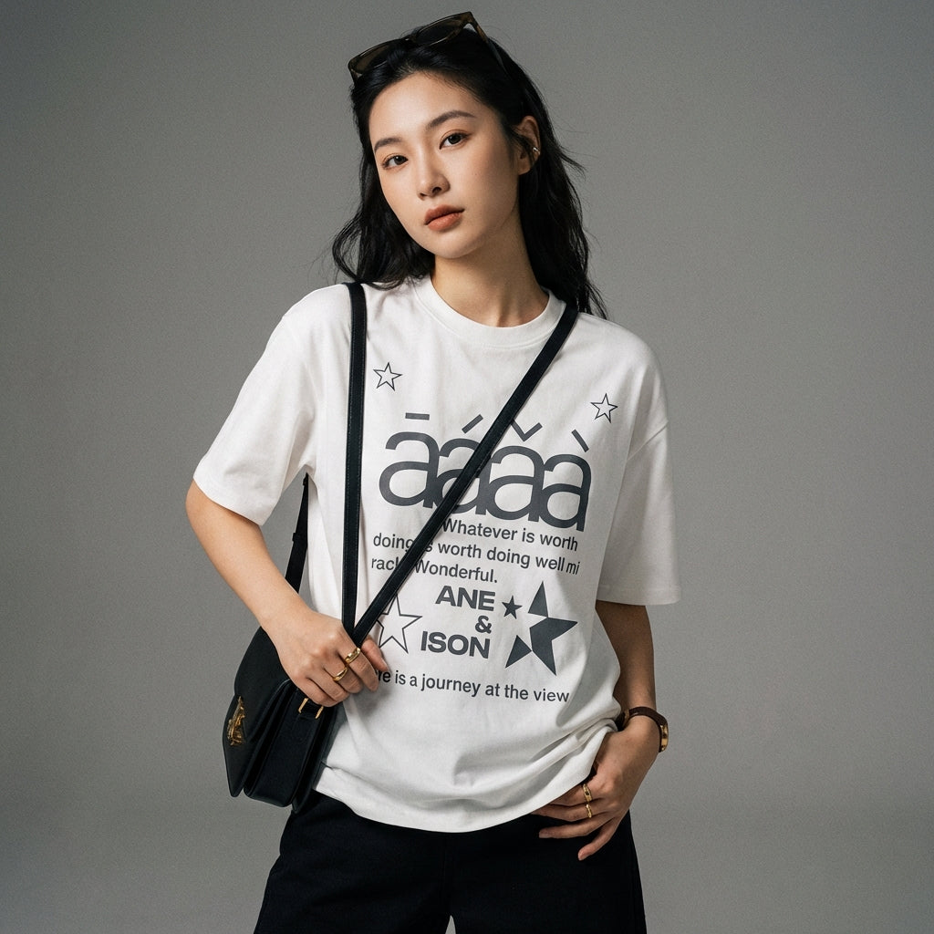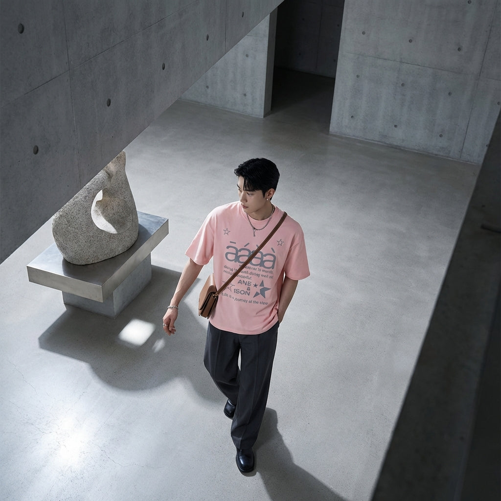 - Style : Streetwear, K-fashion, Décontracté. Ce t-shirt incarne l'esprit libre et branché de la mode coréenne, idéal pour un look urbain et moderne.