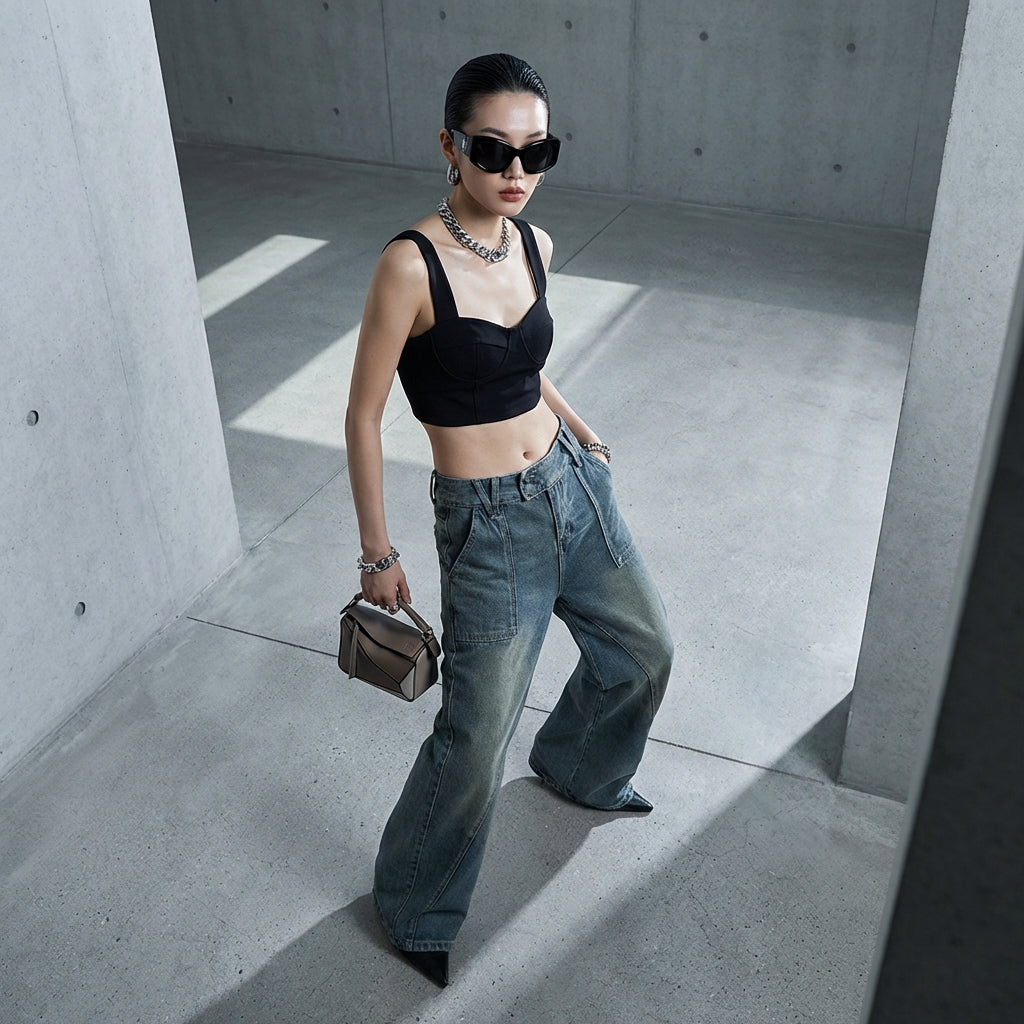 Ce jean est un incontournable pour celles qui recherchent une pièce forte et confortable, facile à associer avec des hauts courts ou des vestes oversize pour un style résolument tendance.