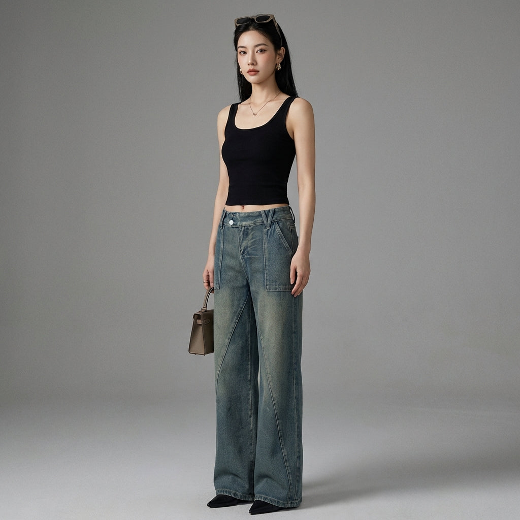 Affirmez votre style avec notre jean taille basse, doté d'une ligne fendue irrégulière et de poches pratiques. Ce modèle audacieux allie confort et tendance pour un look moderne et décontracté, parfait pour toutes vos sorties !👖