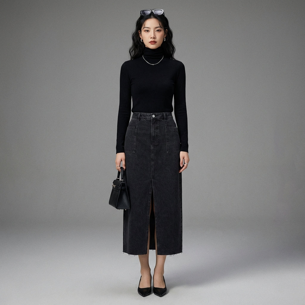 Adoptez un look tendance et intemporel avec notre jupe longue en denim, dotée d'une fente élégante. Sa taille haute souligne la silhouette, offrant un style streetwear vintage parfait pour toutes les occasions ! 💫