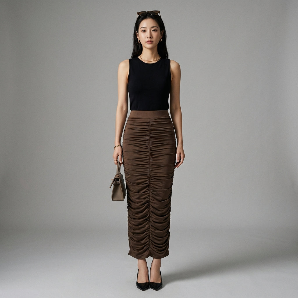 • Type : Jupe longue, Plissée, Taille haute. Une coupe midi qui allonge la silhouette et met en valeur la taille, idéale pour diverses occasions.