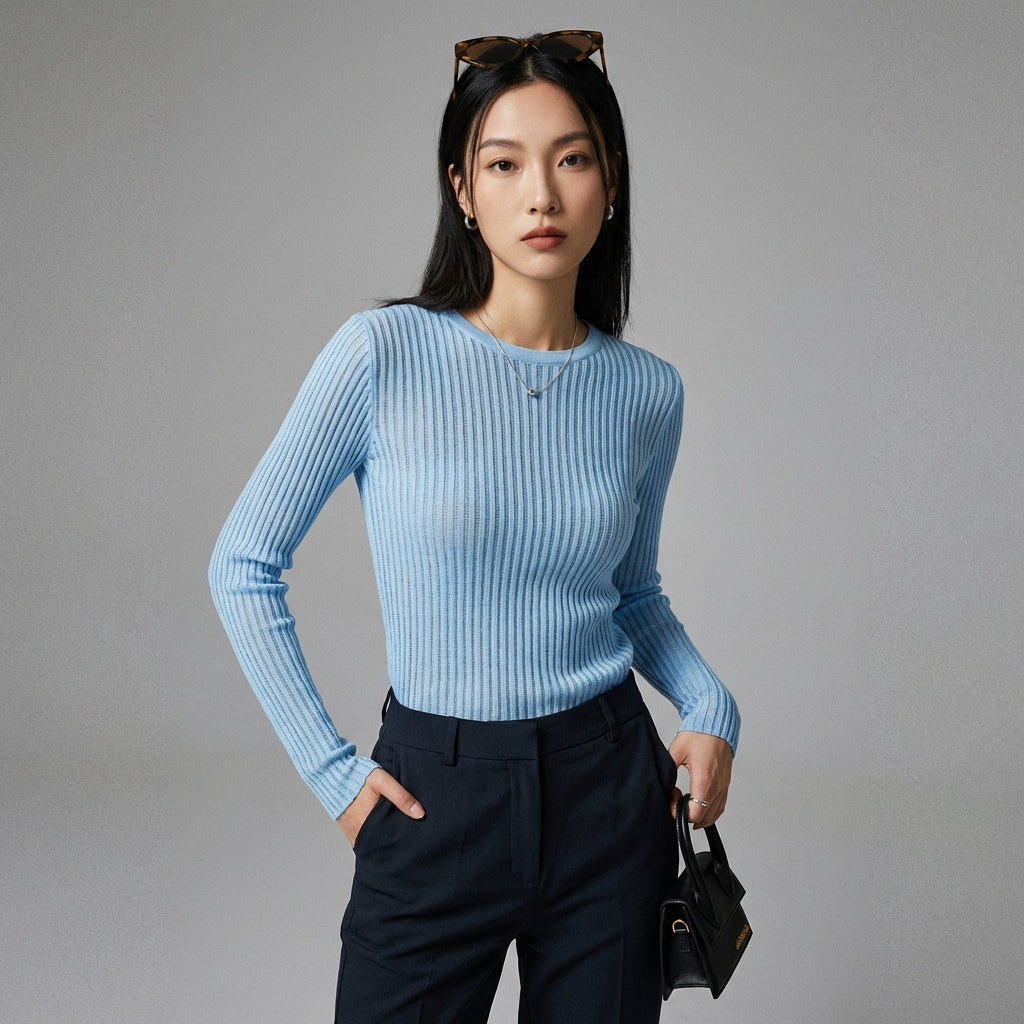 Adoptez un look tendance et aéré avec notre pull en tricot ajouré. Ce haut à col rond et manches longues offre une silhouette délicate et moderne, parfait pour superposer ou porter seul. Idéal pour un style chic et décontracté ! ✨