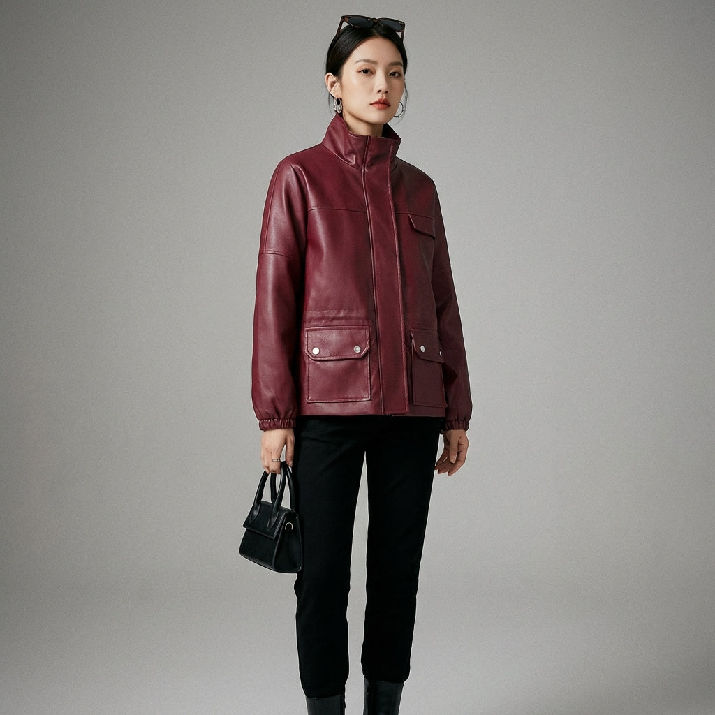 Veste courte zippée rouge pour femme - Style K-fashion - Taille S