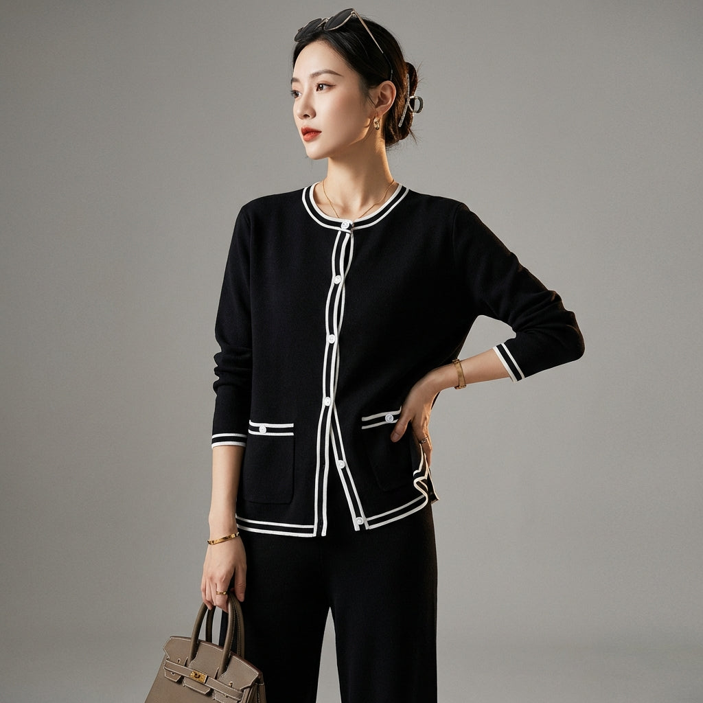 - Type : Ensemble deux pièces, Cardigan, Pantalon droit. Une tenue complète et harmonieuse, facile à porter et à accessoiriser.