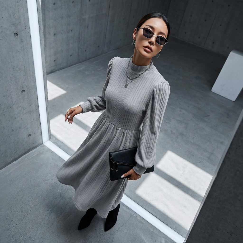 - Style : Minimaliste, Tendance, K-fashion. Cette robe incarne l'élégance discrète et les lignes épurées de la mode coréenne contemporaine.