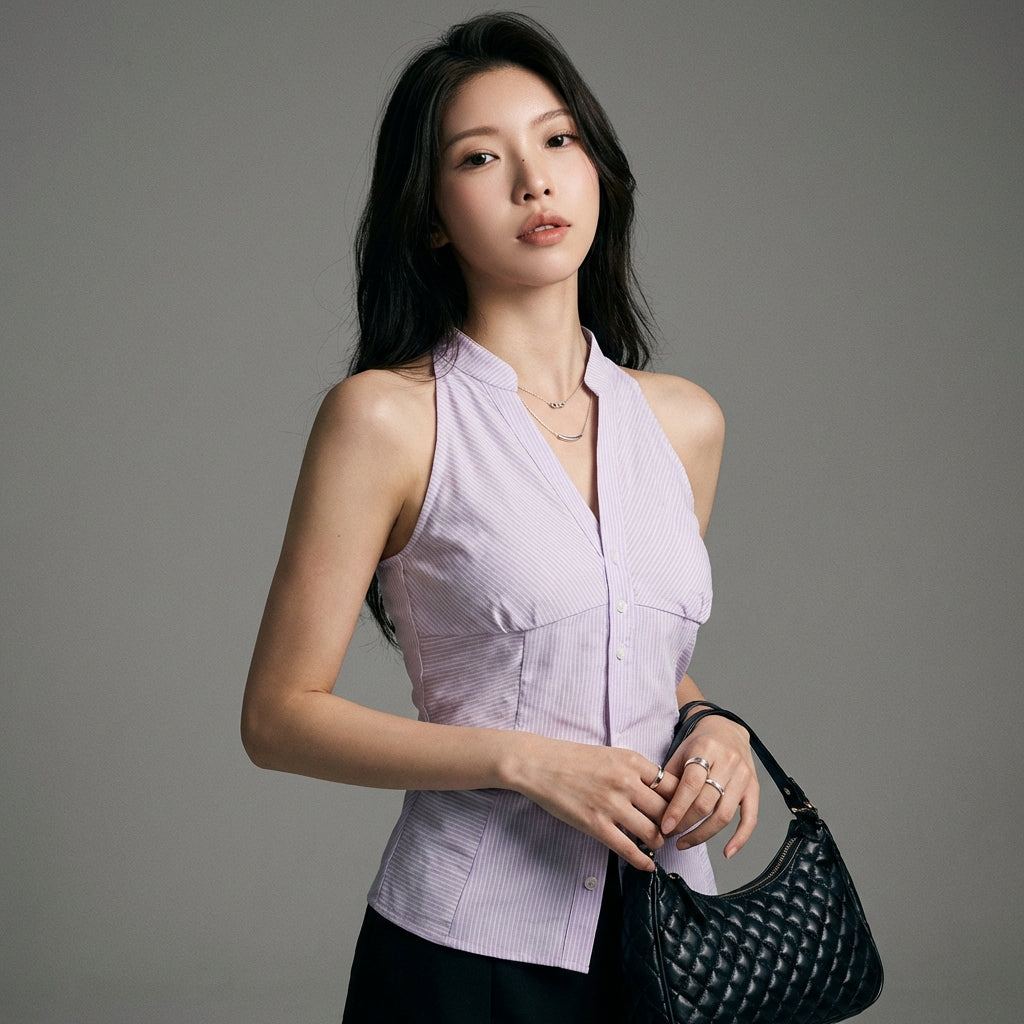 Affirmez votre style avec ce top court rayé, doté d'un col chemise et d'un dos nu audacieux. Sa coupe ajustée et ses rayures classiques en font une pièce tendance et polyvalente pour sublimer votre silhouette ! ✨
