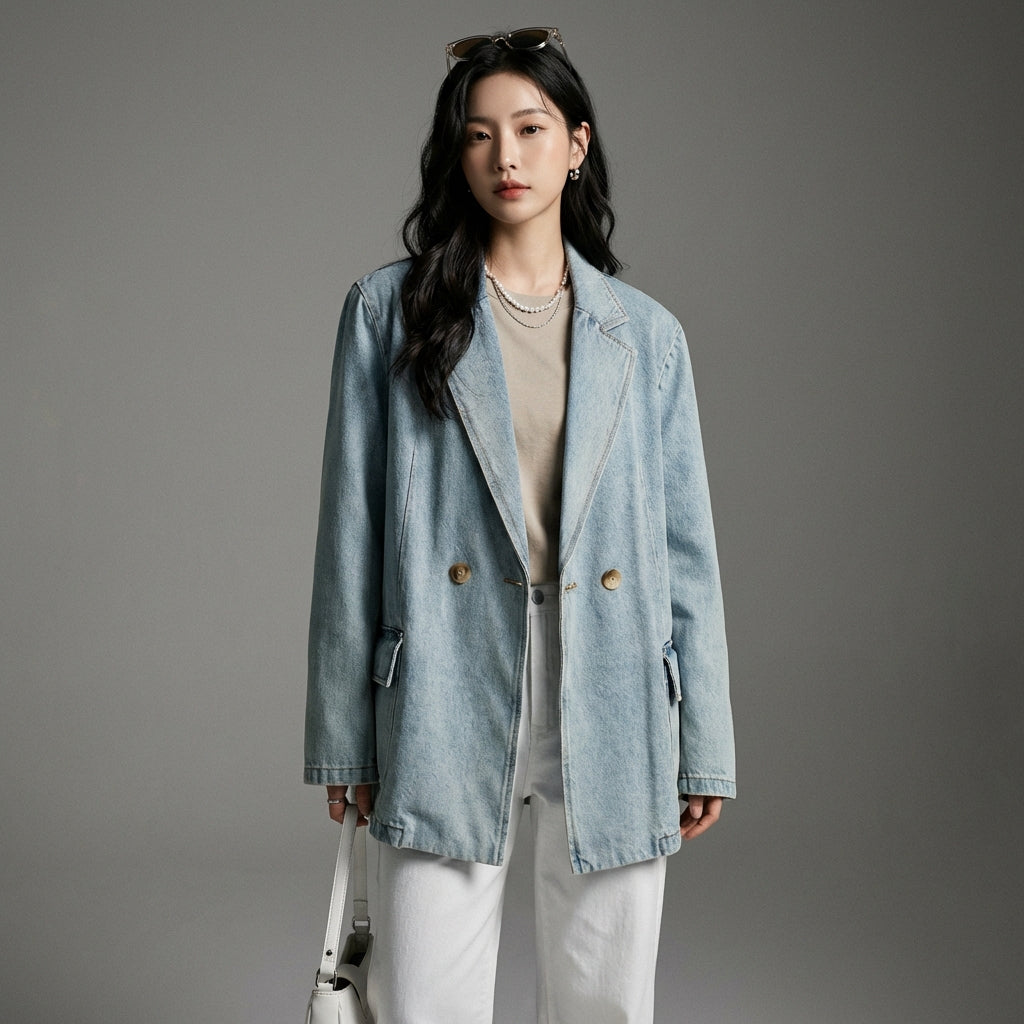 Adoptez un look tendance et décontracté avec notre veste en jean oversize, parfaite pour toutes les saisons. Son design moderne avec des manches longues et des boutons doubles apporte une touche de style unique à votre garde-robe ! ✨