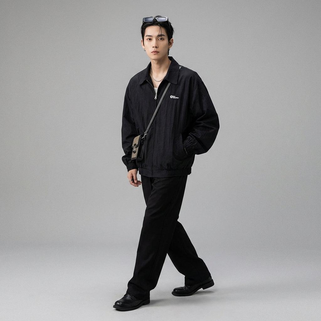 Cette veste est le choix parfait pour ceux qui recherchent un vêtement confortable et tendance, capable de rehausser n'importe quelle tenue décontractée avec une pointe de K-fashion.