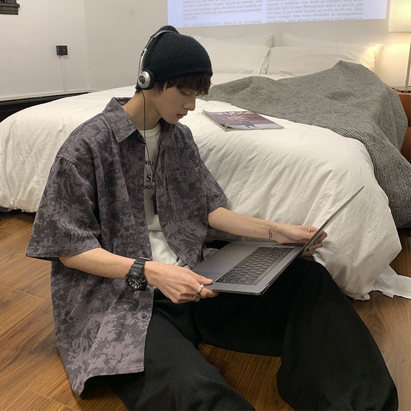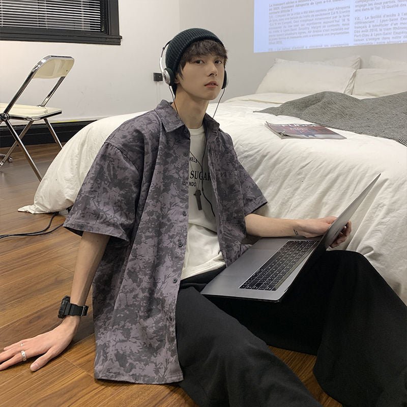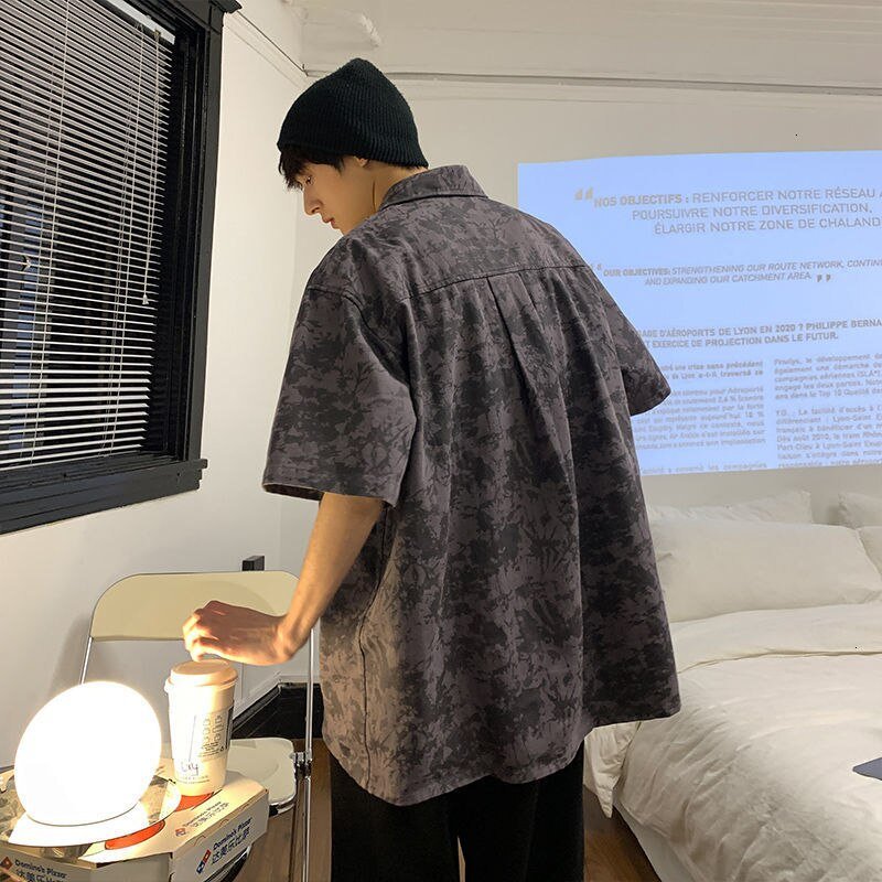 Si vous aimez le Streetwear et la mode jeune en Corée du Sud, vous allez adorer cette chemise à manches courtes imprimée de Camouflage. Le motif Camo est très bien vu en Corée du Sud grâce à la culture militaire. Cette chemise est légère et agréable pour l'été.