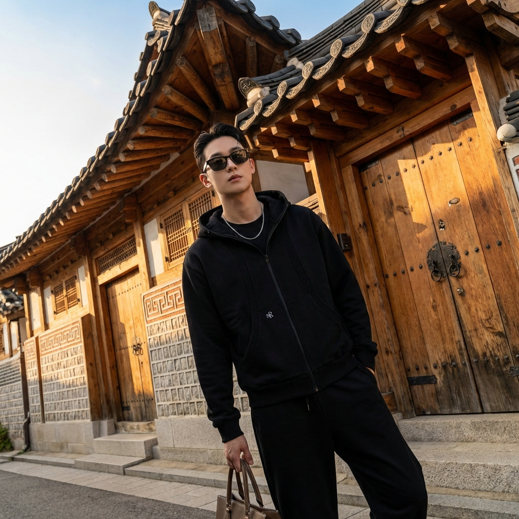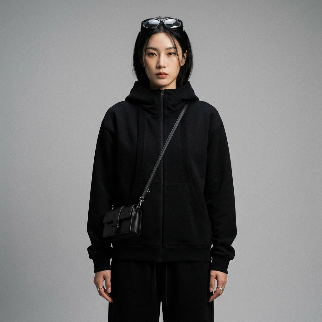 Cardigan hoodie oversize noir style streetwear K-fashion pour homme et femme