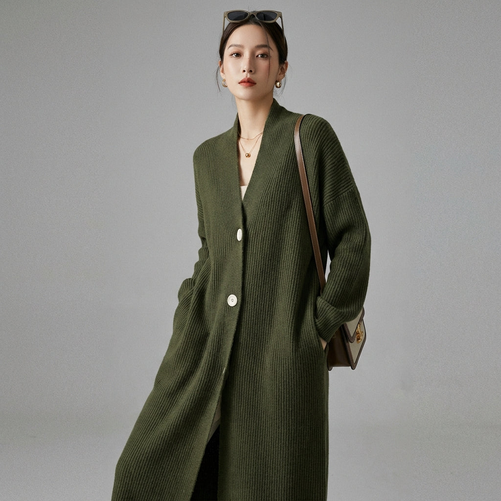 Cardigan long en tricot col V élégant pour femme - K-fashion