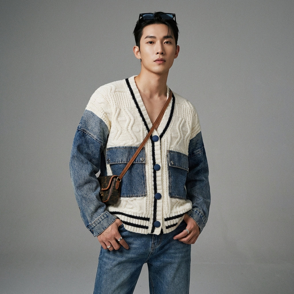 - Style : K-fashion, Décontracté, Oversize. Ce cardigan incarne l'esthétique décontractée et moderne de la mode coréenne, parfait pour un look streetwear ou une tenue plus sophistiquée.