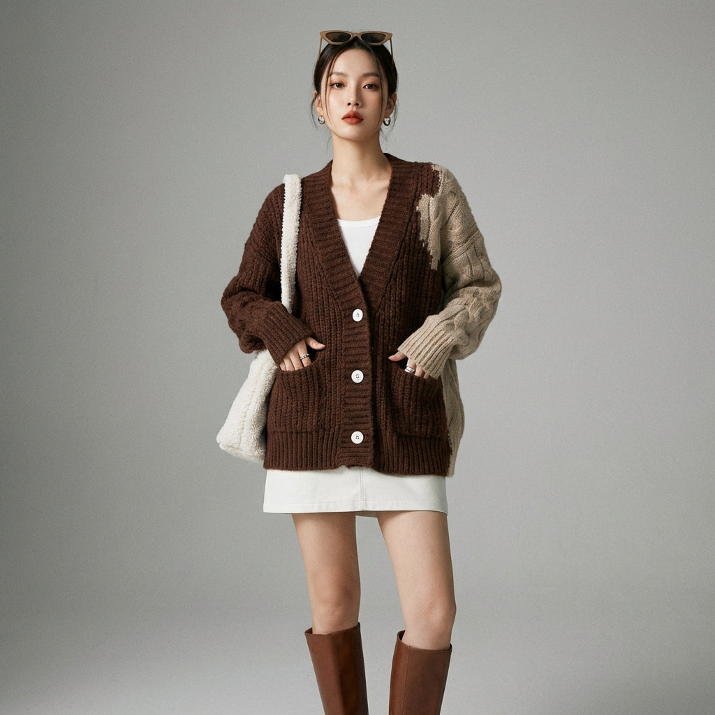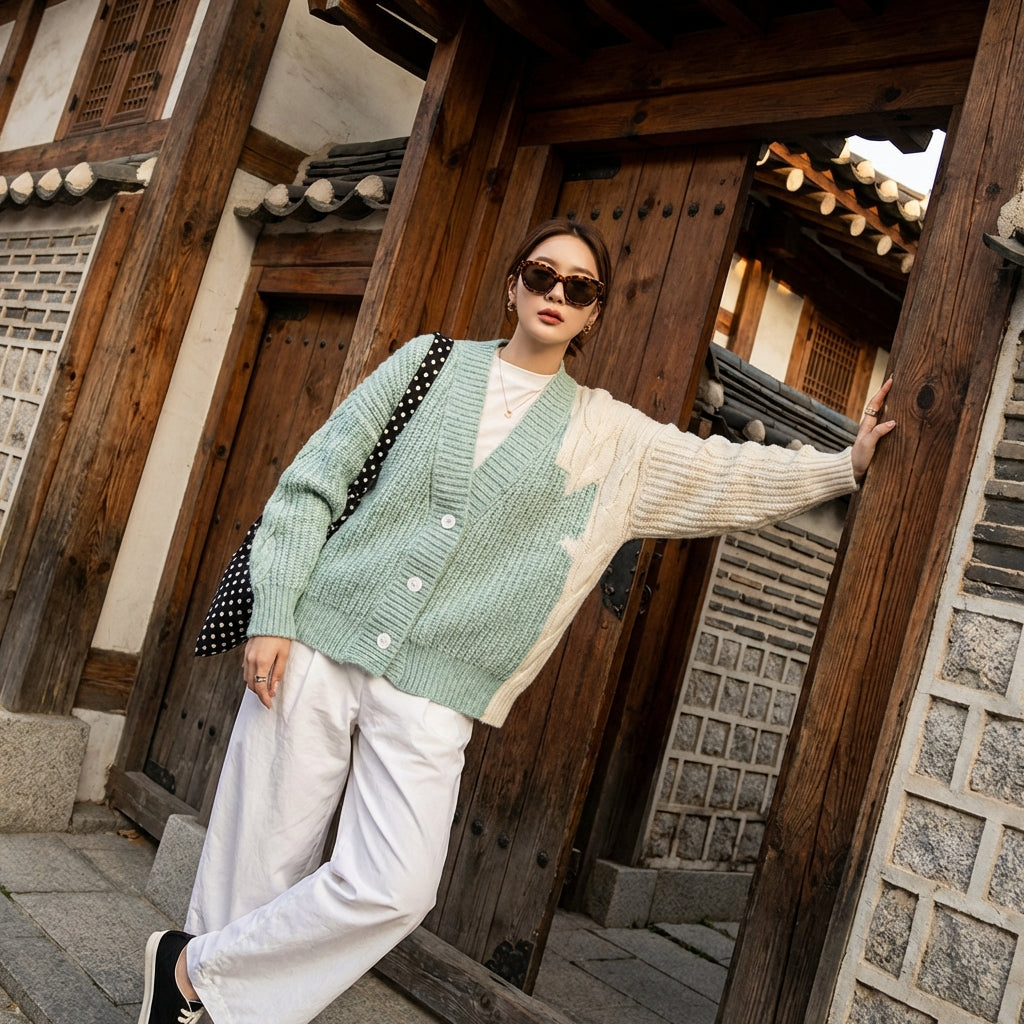 - Style : Mode coréenne, Casual chic, Tendance. Ce cardigan incarne l'esthétique décontractée et moderne de la K-fashion, facile à associer.