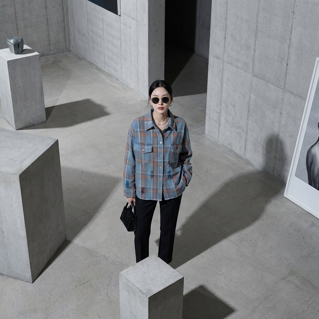 - Type : Chemise à carreaux, coupe ample. Une silhouette confortable et polyvalente, facile à superposer ou à porter seule.
