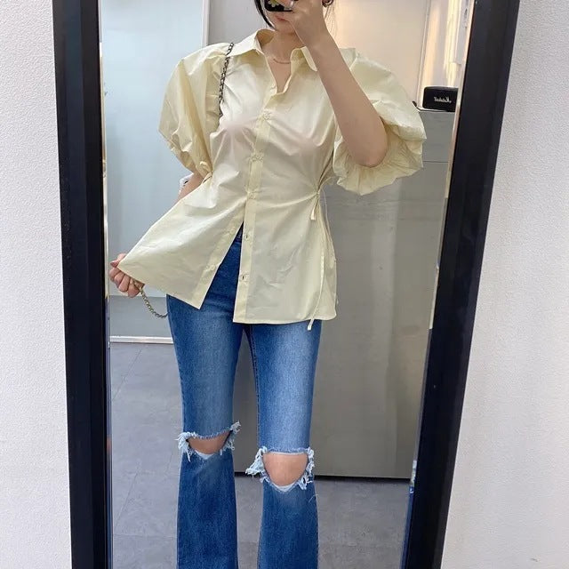 Découvrez notre chemise coréenne à manches bouffantes, parfaite pour un look à la fois élégant et décontracté. Cette chemise est idéale pour toutes les occasions, que ce soit pour une sortie entre amis ou une journée de travail. 🌸