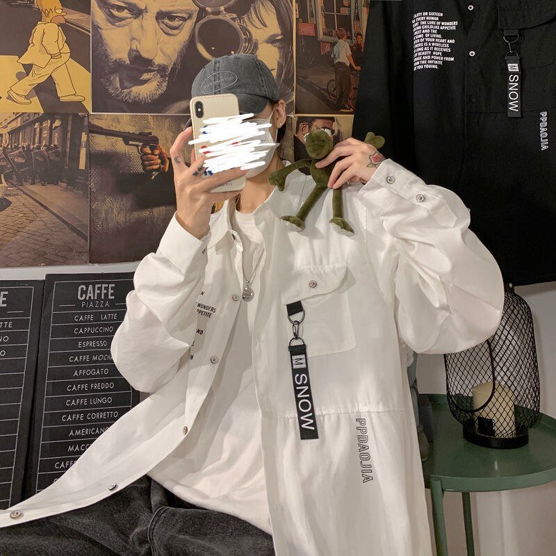 Cette chemise est faite en coton et en polyester. Elle est très douce et agréable à porter. Si vous aimez la mode coréenne et les vêtements noirs et blancs, cette belle chemise est faite pour vous. Elle possède un petit bandeau avec marqué "Snow", ce qui veut dire "neige".