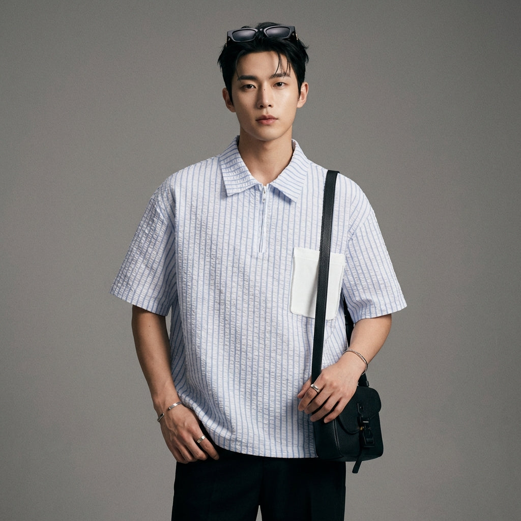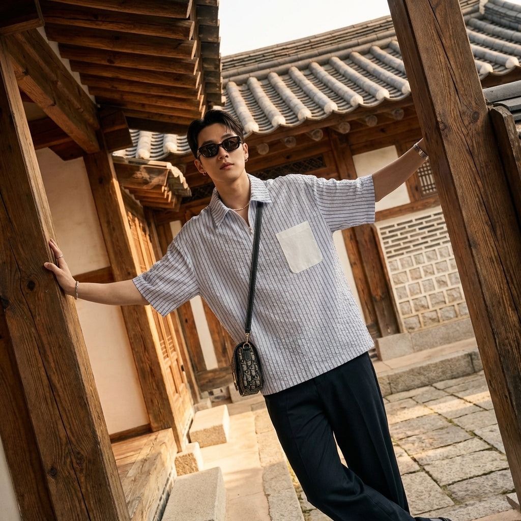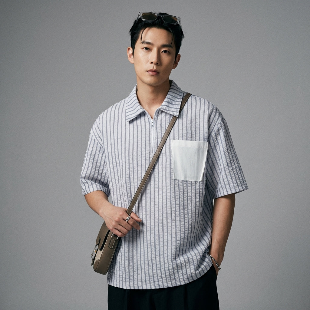 - Style : Streetwear, K-fashion, Décontracté. Cette chemise incarne l'esprit de la mode urbaine coréenne avec ses lignes épurées et son design moderne.
