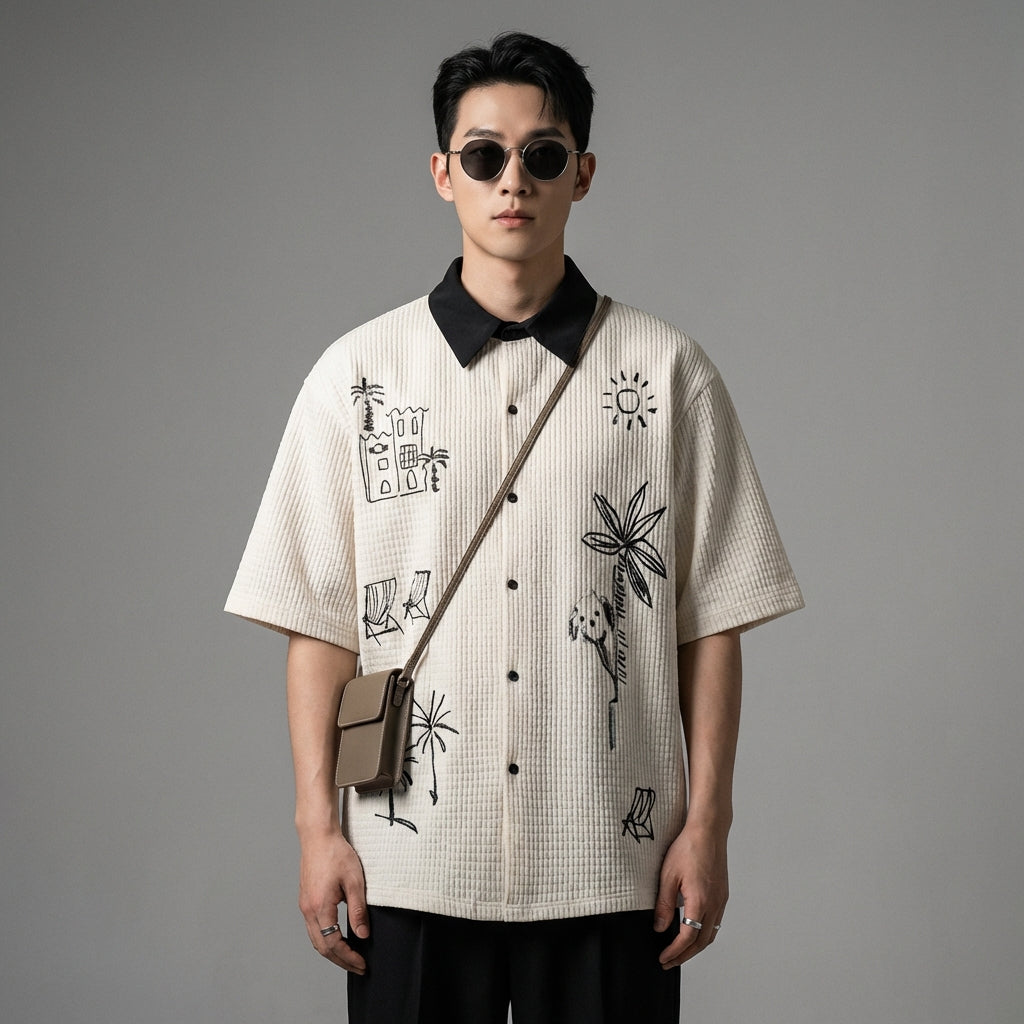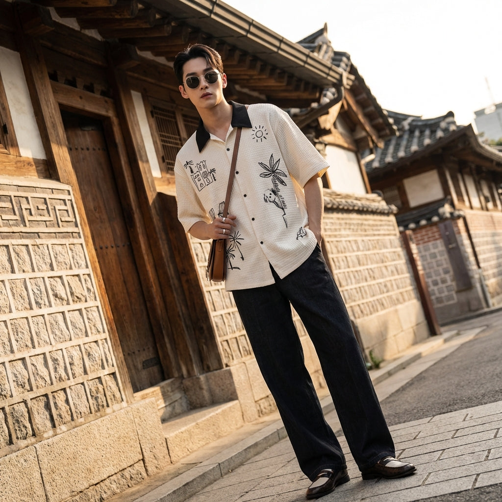 - Style : Mode coréenne, Streetwear, Décontracté, Tendance. Cette chemise incarne l'esprit de la mode urbaine coréenne avec une touche d'originalité.