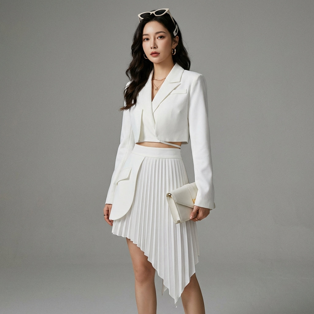 Adoptez un look chic et décontracté avec notre ensemble blazer court à manches longues et jupe plissée taille haute. Parfait pour une silhouette moderne et élégante, cet ensemble est idéal pour toutes les occasions, du bureau aux sorties entre amies ! 💫