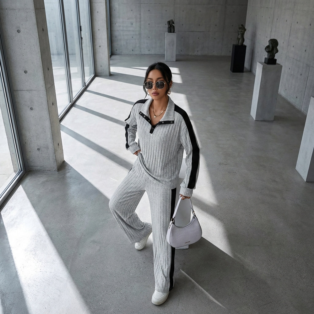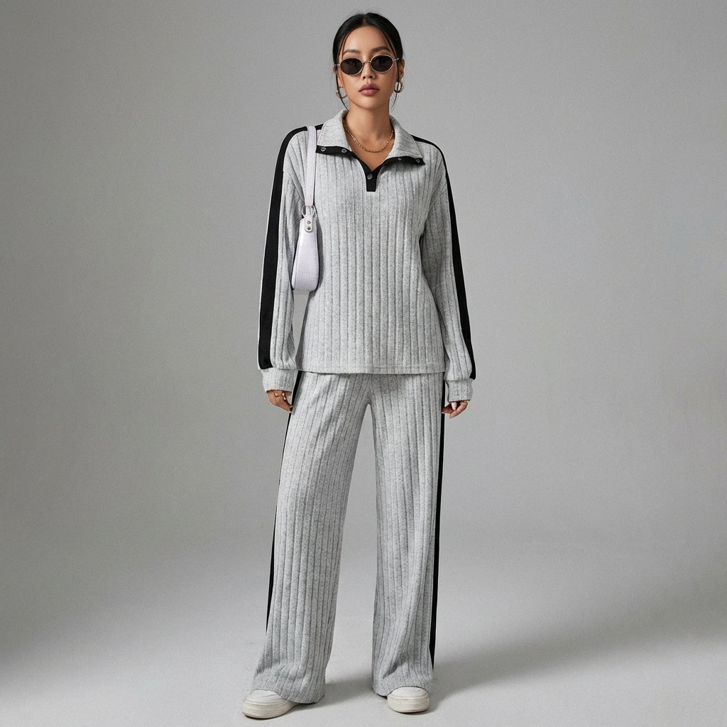 Adoptez un look décontracté et chic avec cet ensemble harmonieux, parfait pour toutes les occasions. Son design épuré avec un col contrasté apporte une touche d'originalité tandis que sa coupe ample assure un confort absolu. Idéal pour une silhouette tendance et moderne ! ✨