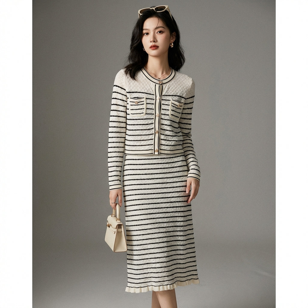 Ensemble Pull et Jupe Tricotés Rayés