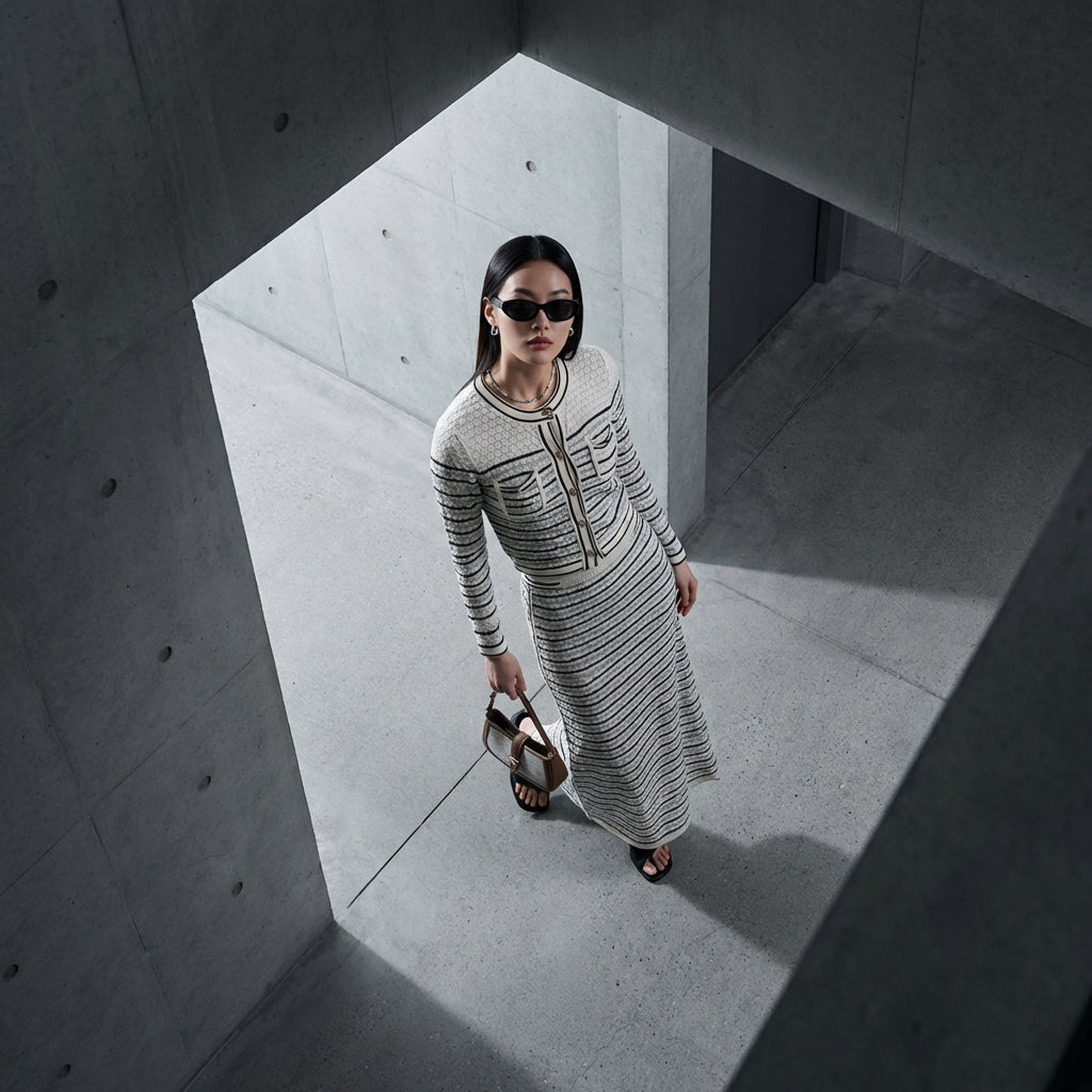 • Style : K-fashion, Tendance, Décontracté, Rayé. Cet ensemble incarne le style coréen moderne avec ses rayures distinctives et sa coupe confortable.