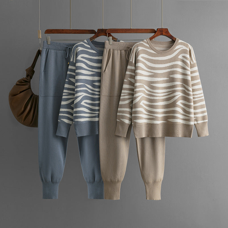Adoptez un look chic et confortable avec notre ensemble tricoté léopard coréen. Ce deux-pièces comprend un haut à manches longues et un pantalon à jambes larges, parfait pour les saisons fraîches. 🌟