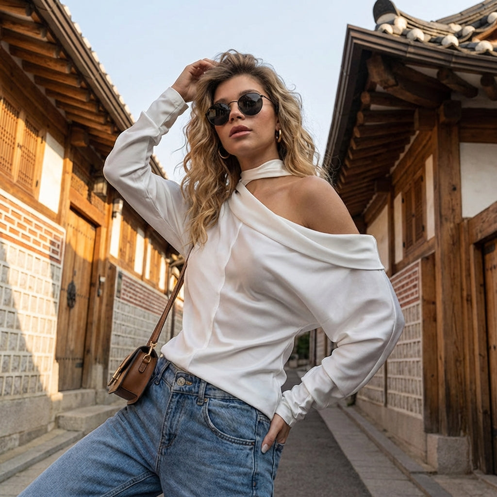Adoptez un look tendance et décontracté avec notre haut à col oblique et manches chauve-souris. Sa coupe ample et son design épuré en font une pièce polyvalente, idéale pour un style urbain chic ! ✨