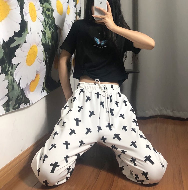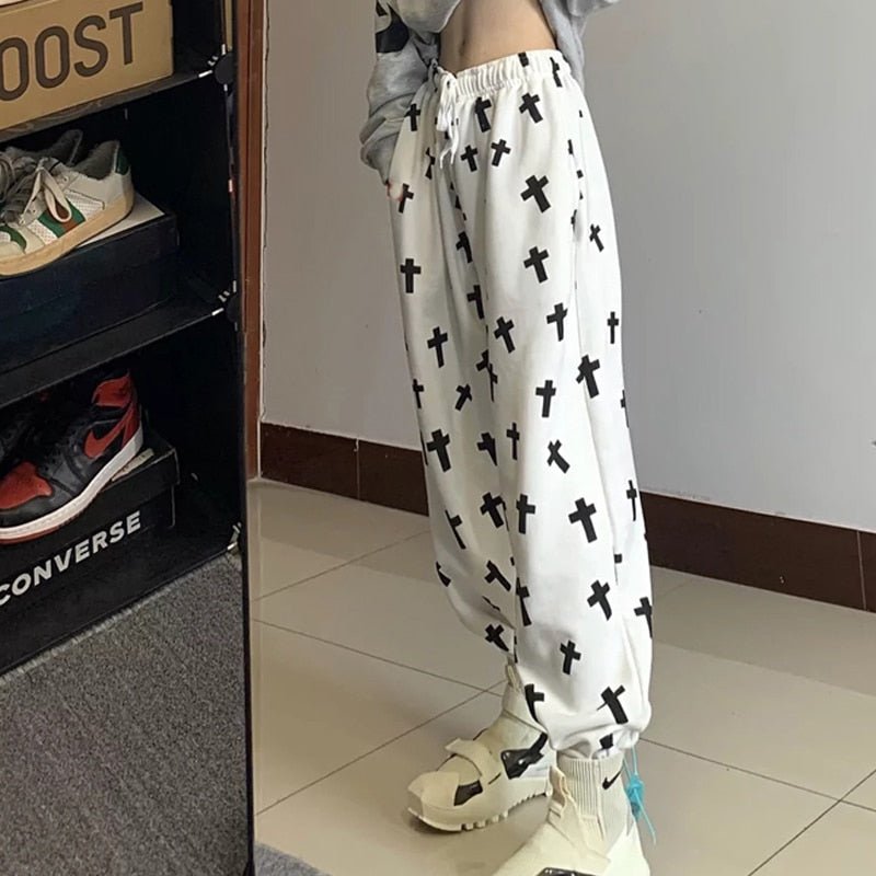 Découvrez un Jogging Ulzzang avec les crois chrétiennes. Ce motif est très à la mode en Corée du Sud et partout en asie. Portez fièrement ce Jogging de Streetwear du Christ.