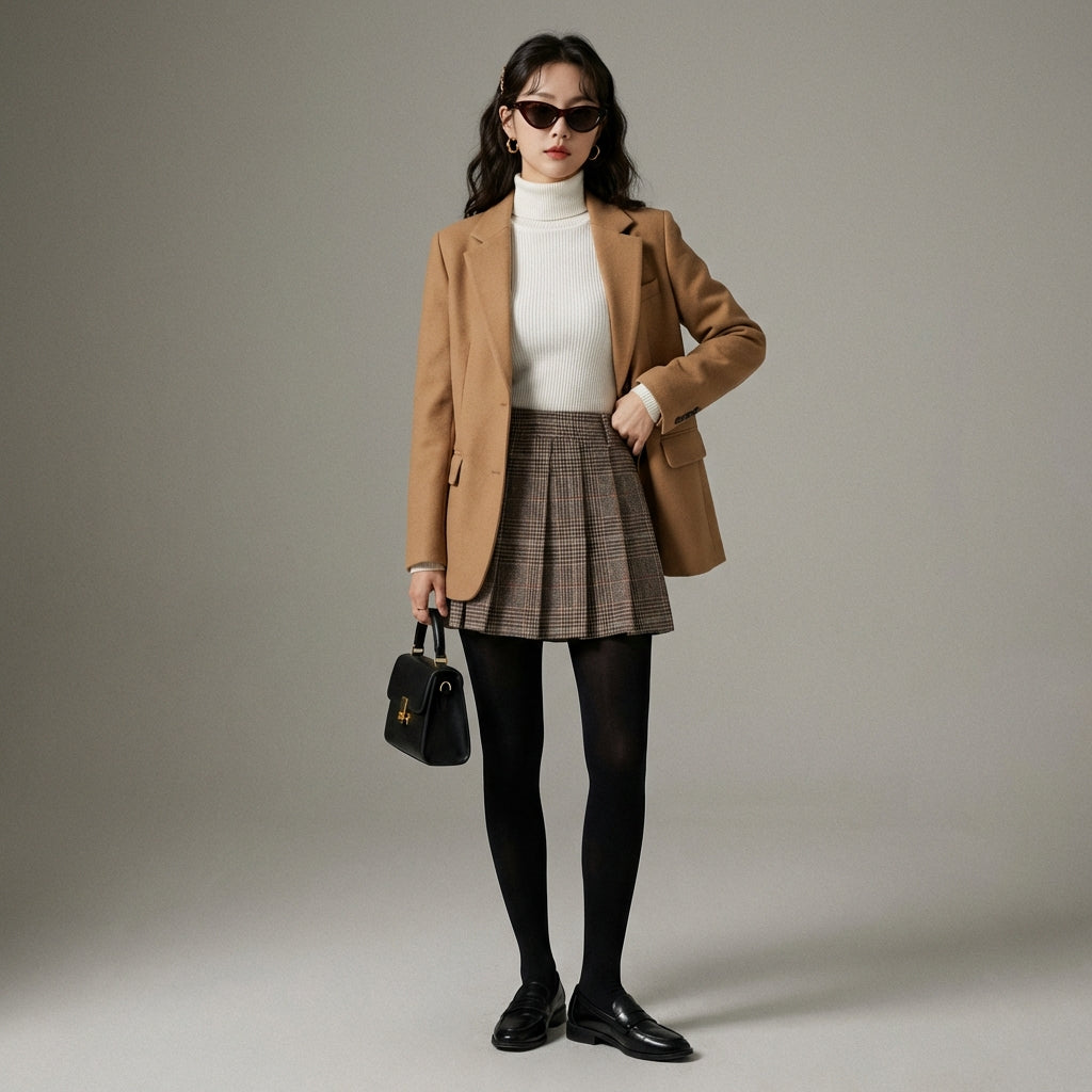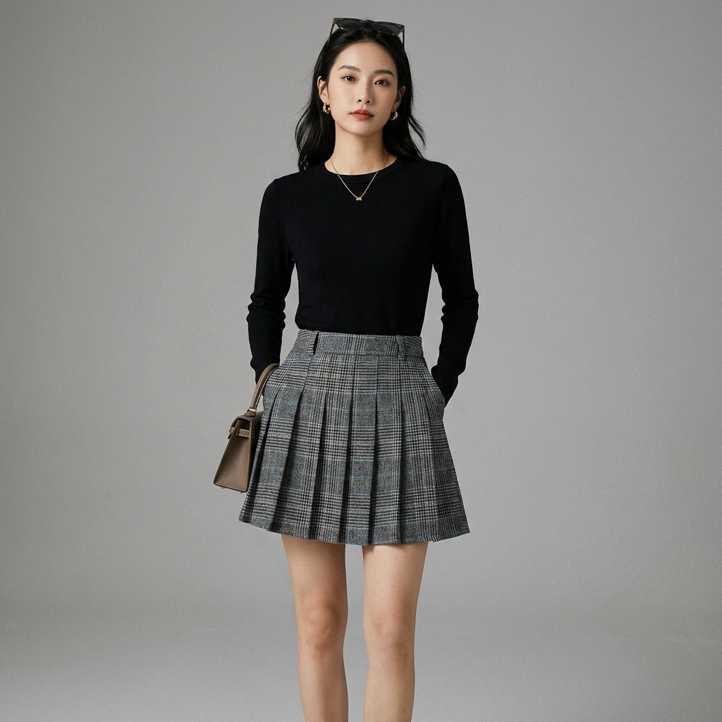 - Style : Mode coréenne, Rétro, Tendance, Académique. Cette jupe incarne l'esthétique fraîche et douce de la K-fashion, avec une touche vintage qui reste toujours à la mode. Parfaite pour un look preppy ou streetwear.