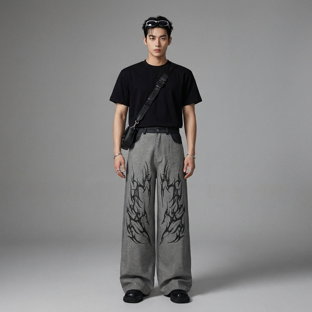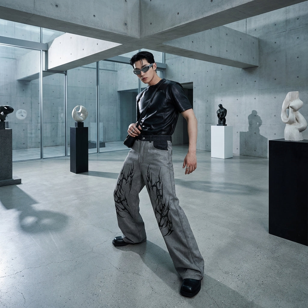 - Style : Streetwear, K-fashion, Audacieux. Ce pantalon incarne l'esprit de la mode urbaine coréenne, parfait pour exprimer une personnalité forte et moderne.