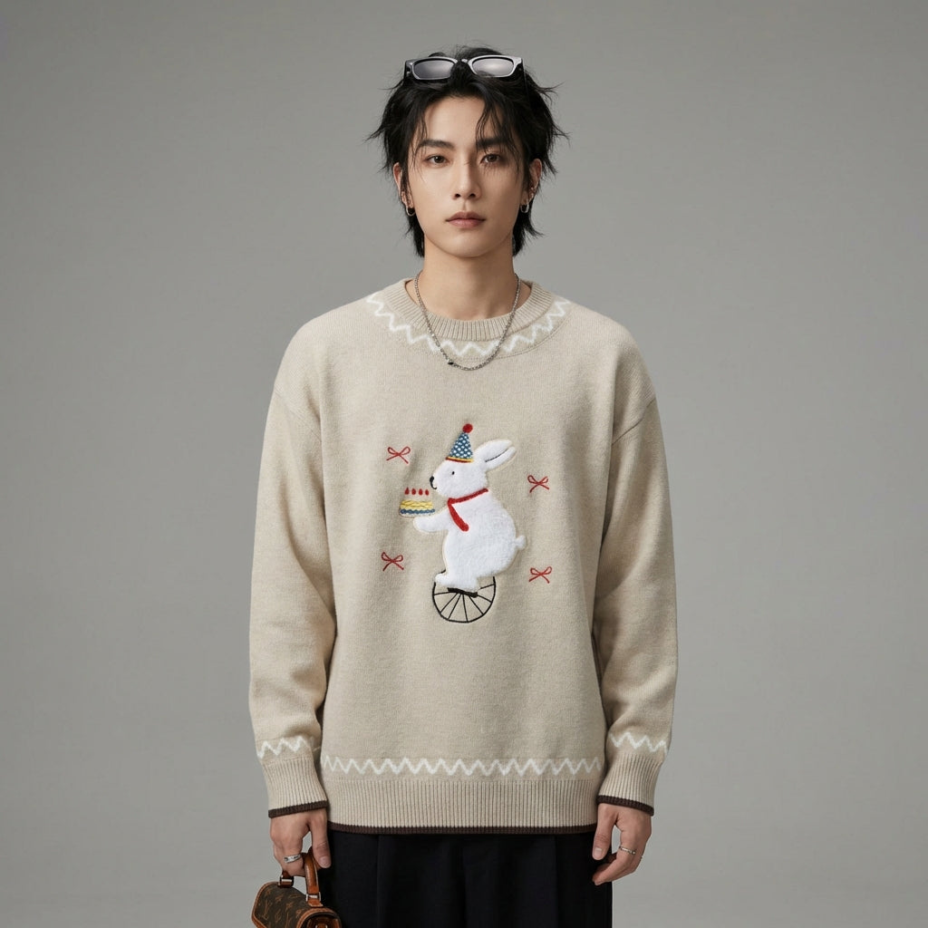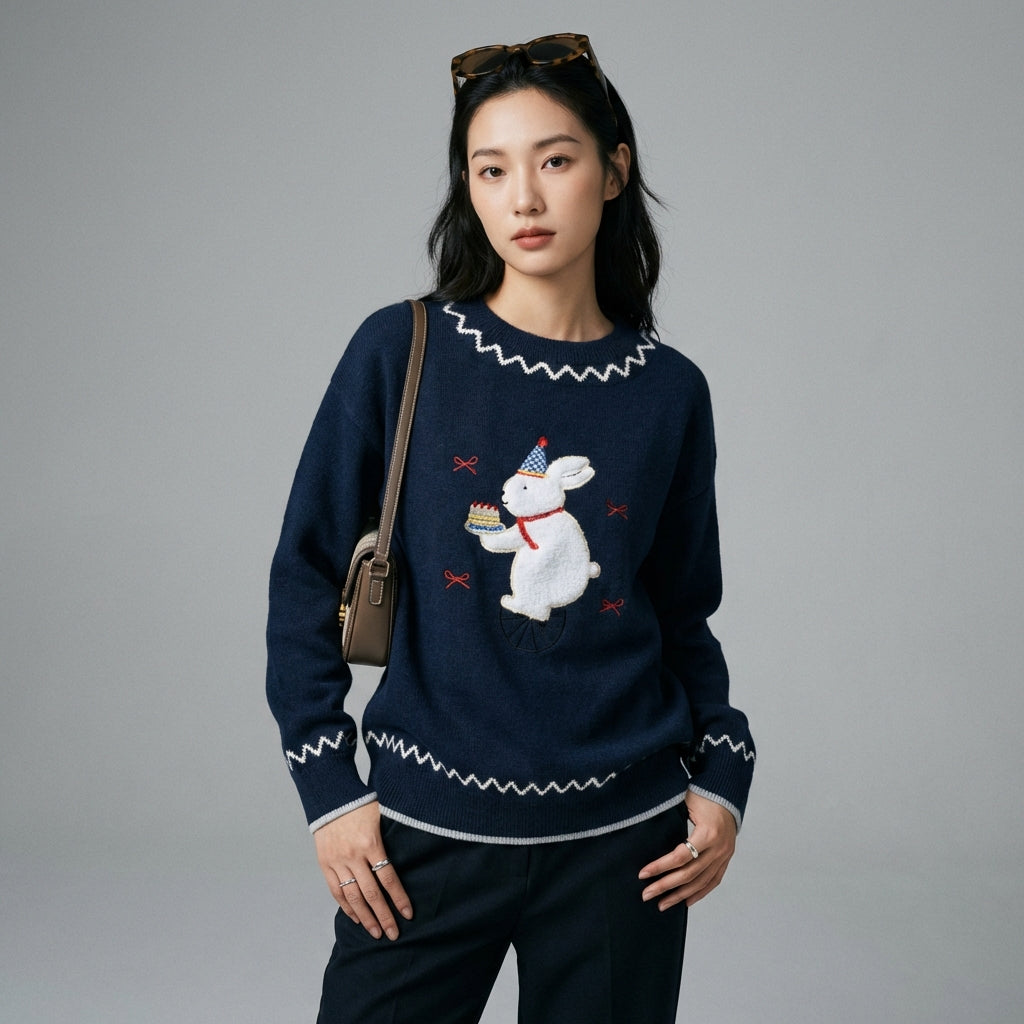Adoptez un look doux et décontracté avec notre pull à col rond, orné d'une adorable broderie de lapin. Ce pull vintage apporte une touche ludique et réconfortante à votre garde-robe, parfait pour les journées fraîches ! 🐰