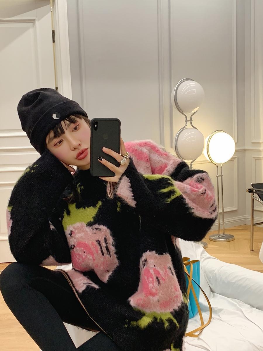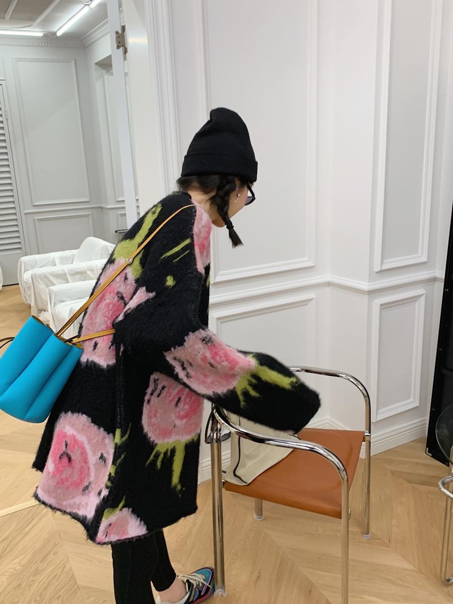 Adoptez un look décontracté et élégant avec notre pull jacquard mi-long à motifs floraux roses sur fond noir. Parfait pour vos moments de détente ! 🌸