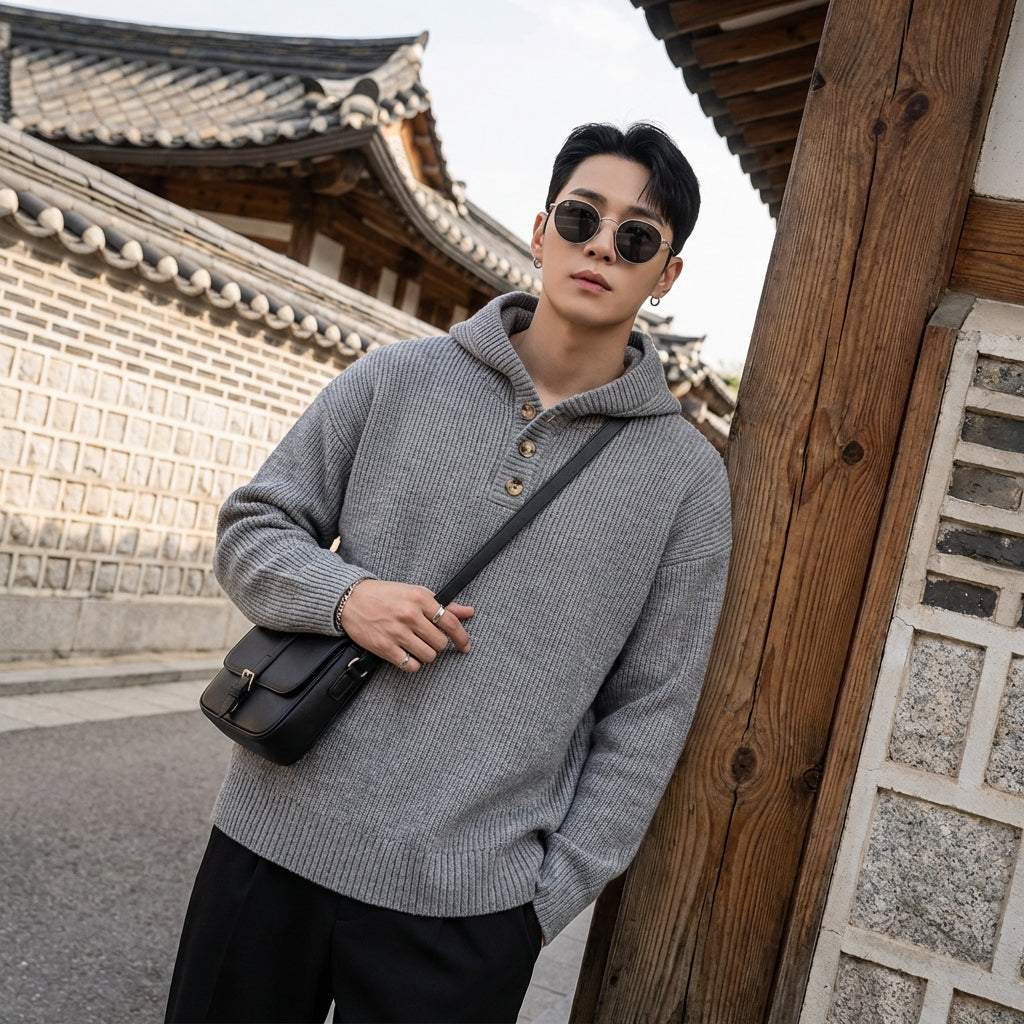 • Style : Streetwear, Vintage, K-fashion. Ce pull incarne une fusion parfaite entre l'esthétique streetwear coréenne et une touche vintage, idéal pour un look affirmé et décontracté.